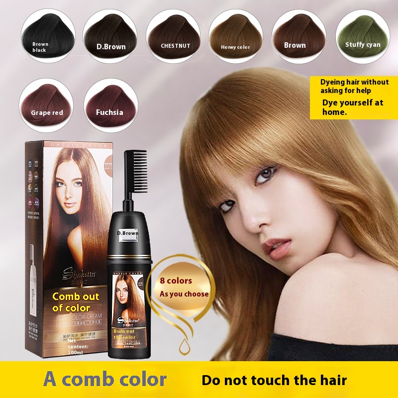 () Douyin’s Popular Hair Dye, Plant-based Natural One-comb Color Hair Dye Cream, One-wash Color, One Black Hair Dye Comb