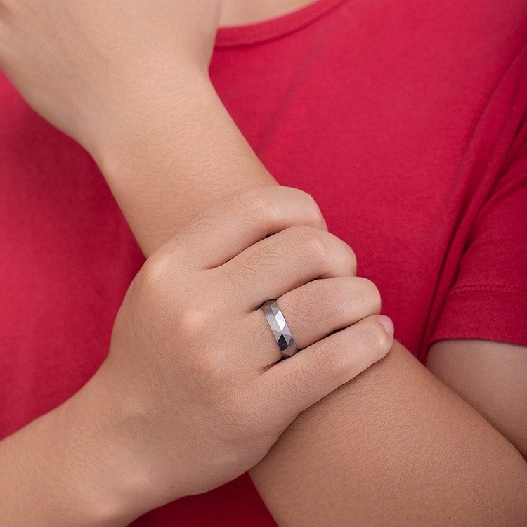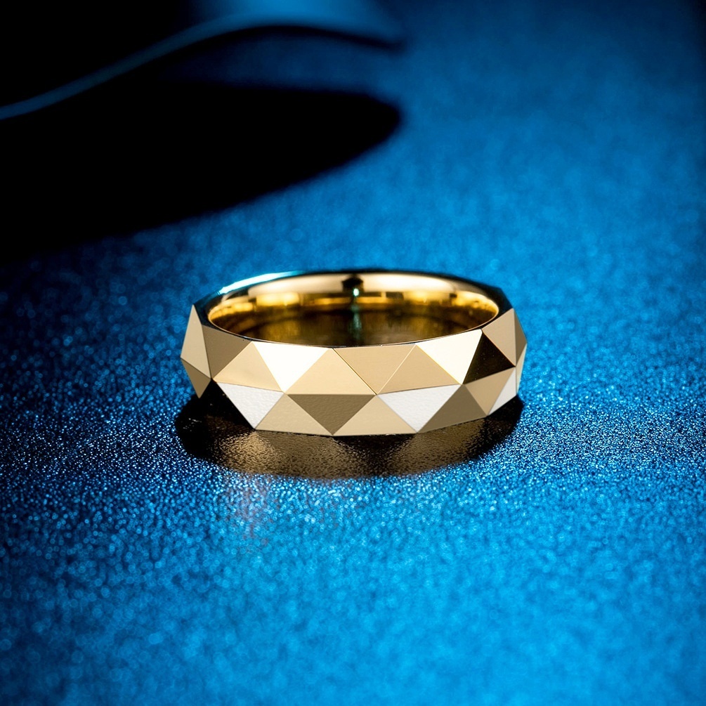 Diamond Cut Tungsten Steel Ring Diamond Cut Tungsten Gold Men's Ring Simple Precious Metaly Men's Jewelry