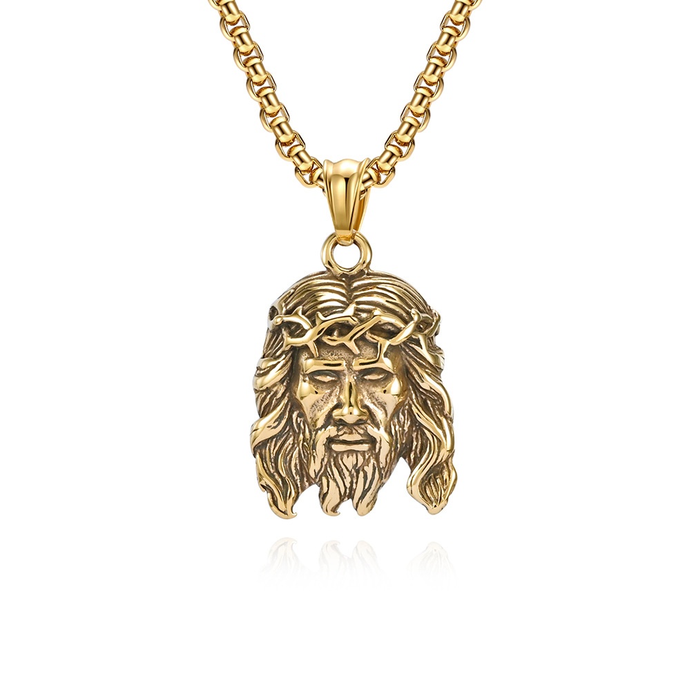 Retro Old Jesus Head Portrait Titanium Steel Necklace Literary Personality Men's Wear Pendant Pendant