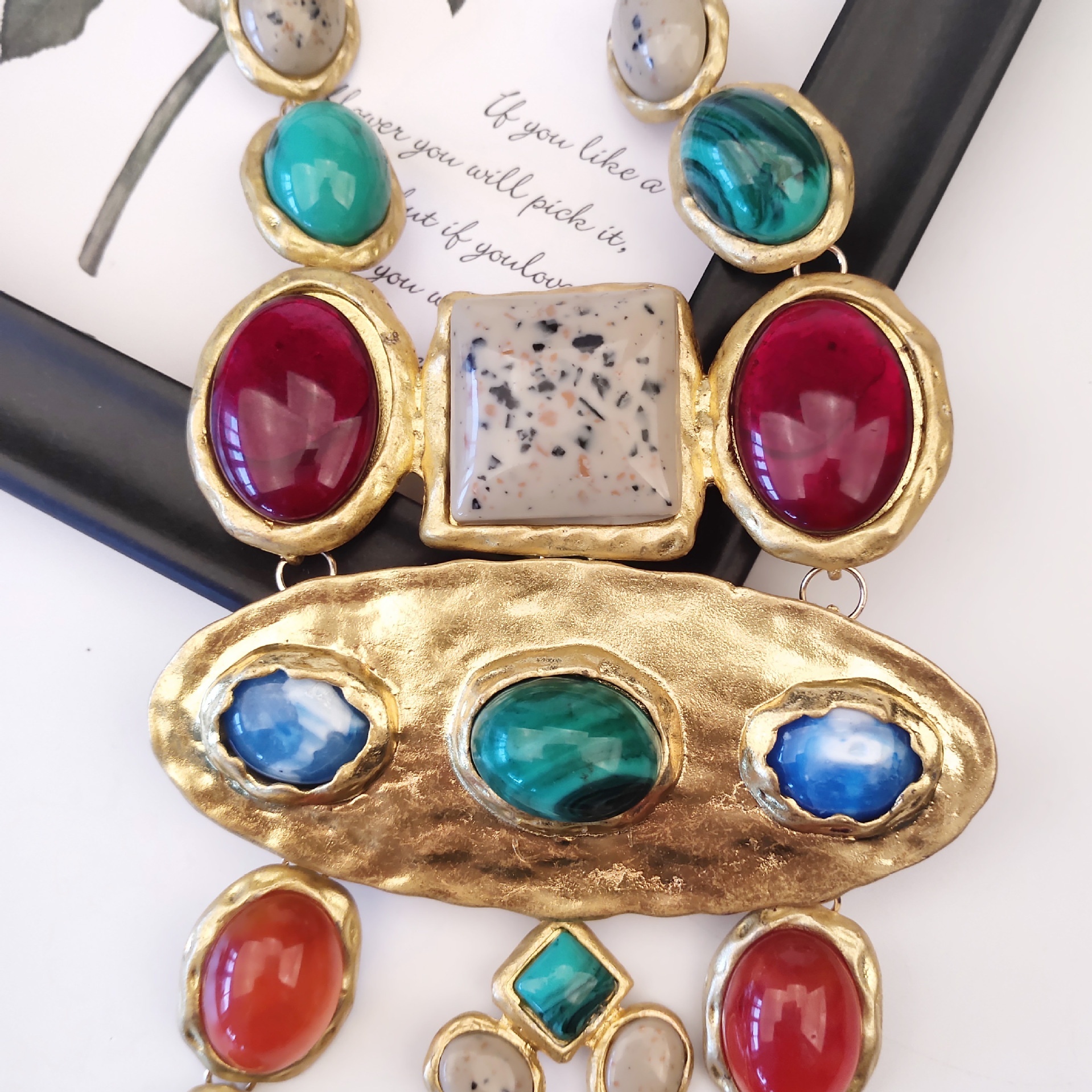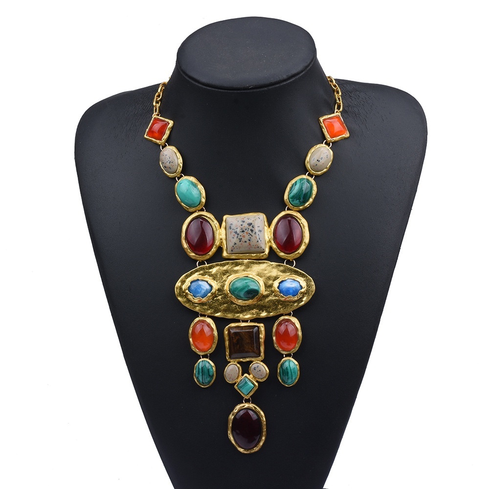 European And American Style ZABaroque Style Geometric Gem Long Necklace Retro Court Style Sweater Chain