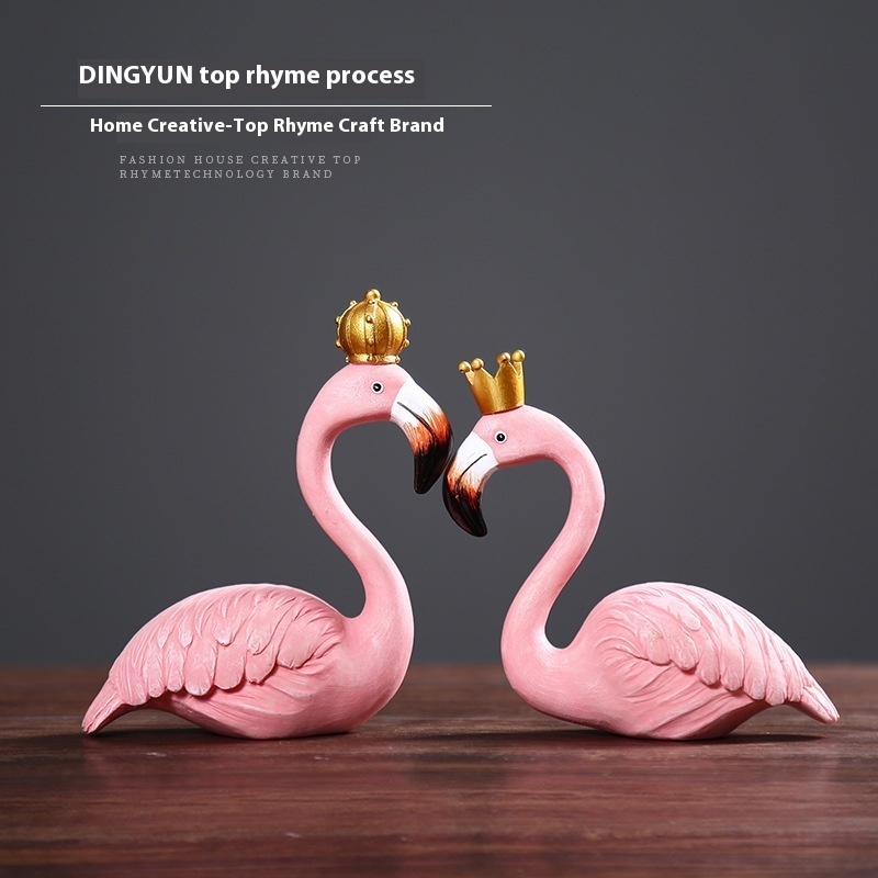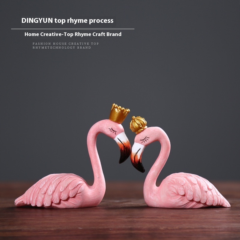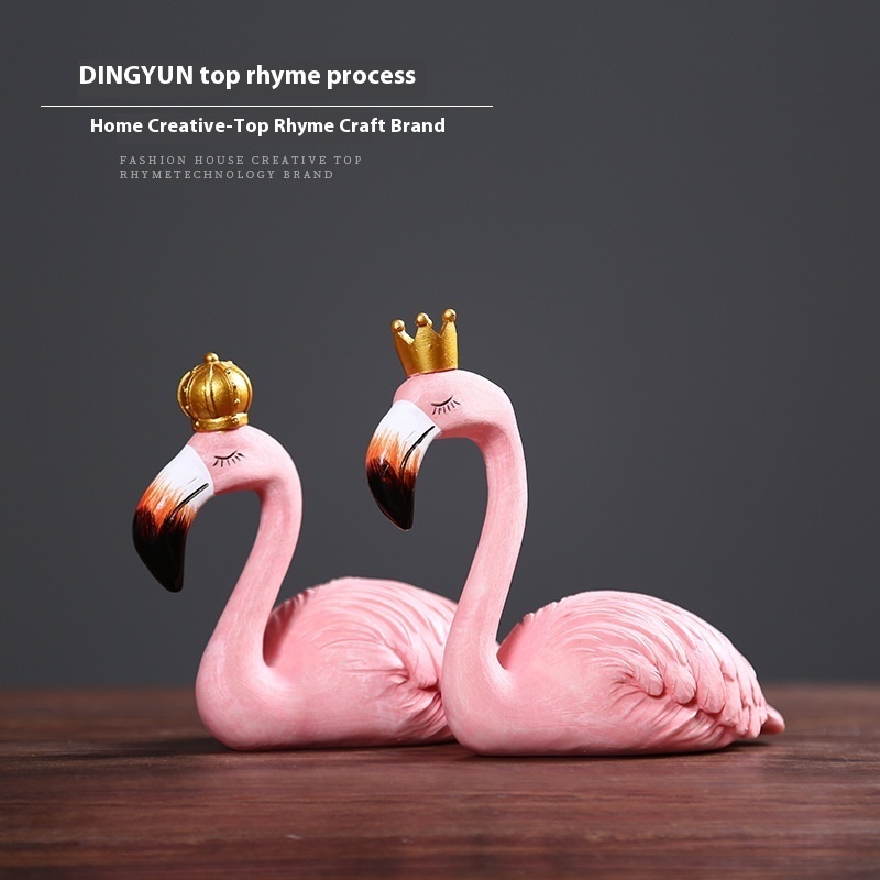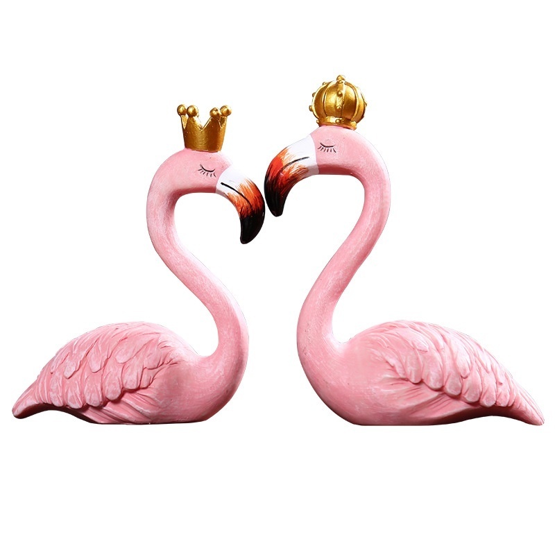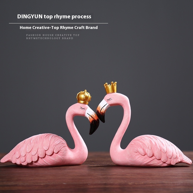 Creative Pink Flamingo Animal Home Living Room TVCabinet Couple Decorations Desktop Crafts Resin Pendulum