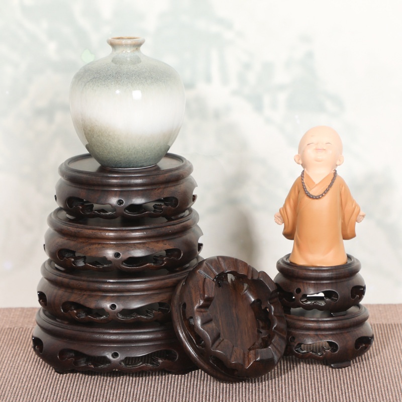 SMahogany Crafts Base Ebony Wood Round Explosive Whole Material Black Catalpa Wood Hollow Flower Pot Seat