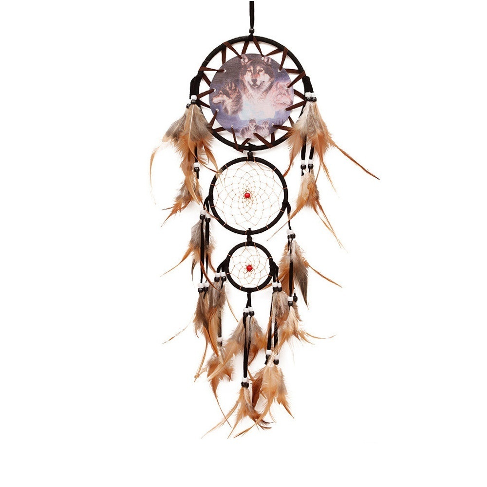 Indian Dream Catcher Wolf Head Oil Painting Dream Catcher Home Wall Decoration Wall Hanging Natural Feather Pendant Big Dream Catcher