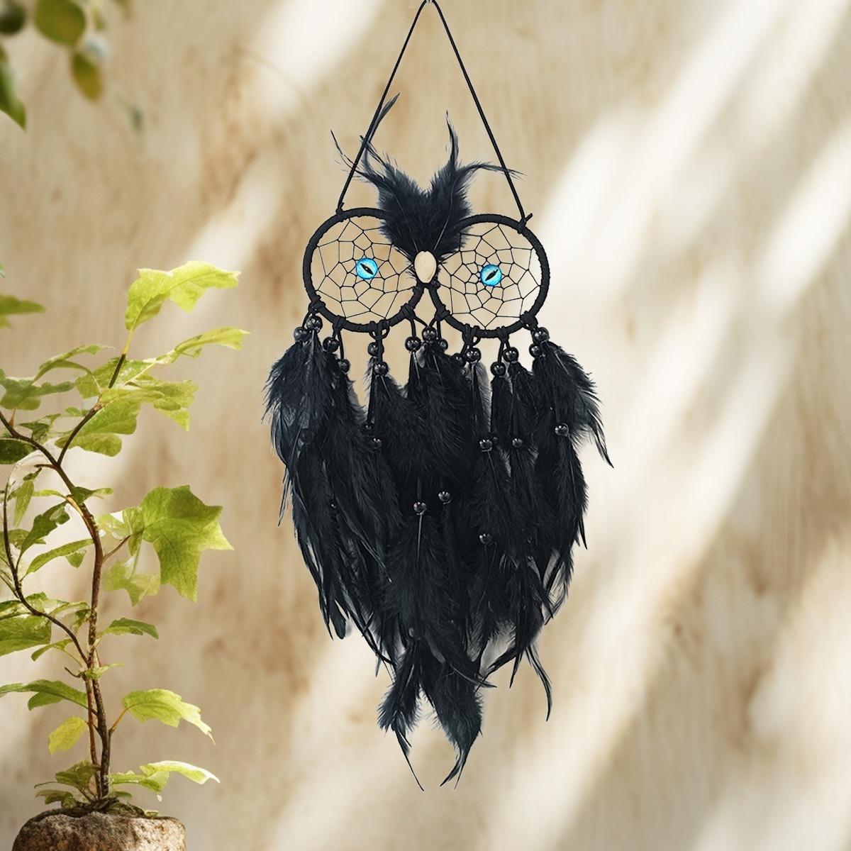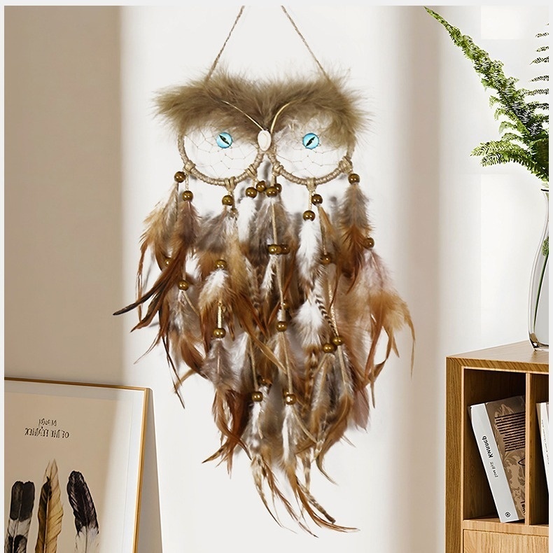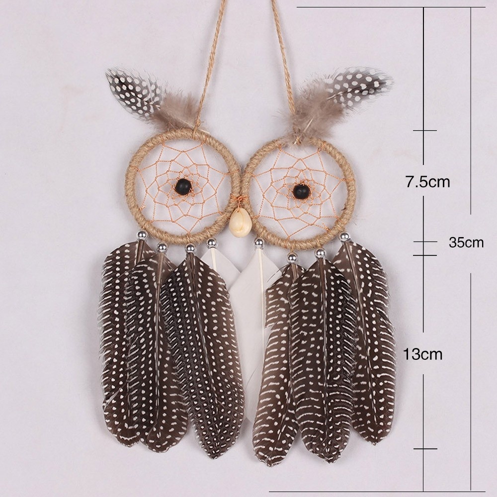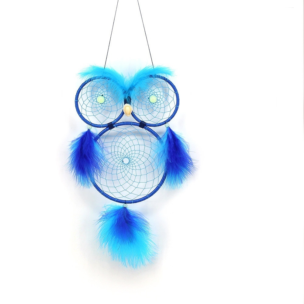 MS7031 Dream Catcher Ornaments Creative Luminous Beads Owl Dream Catcher Handmade Feather Wall Hanging Decoration