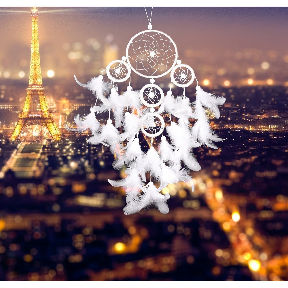 Decorative Five Rings Dream Catcher Indian Feather Home Decoration Creative Home Dream Catcher Girl Heart Ornaments