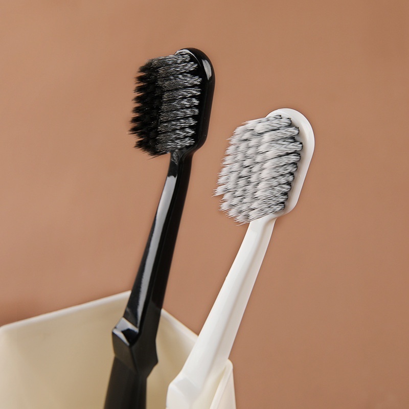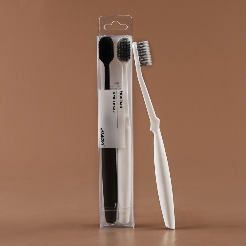 Student Couple Toothbrush Black And White Two-pack Adult Toothbrush Spiral Brush Soft Bristle Toothbrush