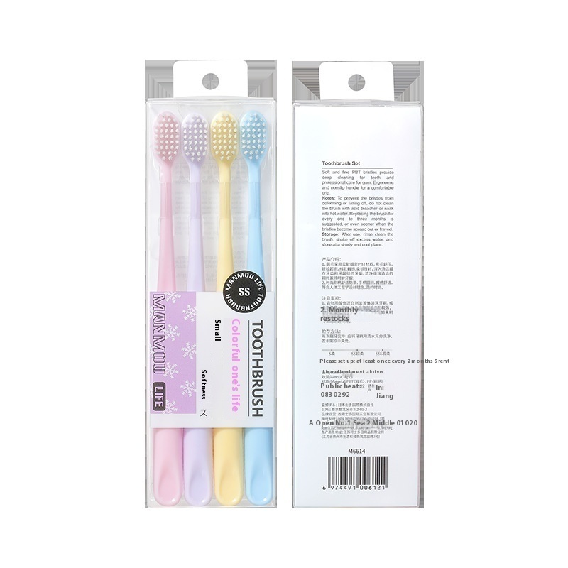 Candy Color Soft Bristle Toothbrush Household4 Pack Couple Japanese Style Small Head Ultra-fine Soft Bristle Toothbrush