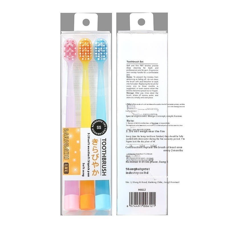 Japanese Soft Bristle Toothbrush Household3 Pack Couple Simple Wide Head Spiral Soft Bristle Toothbrush