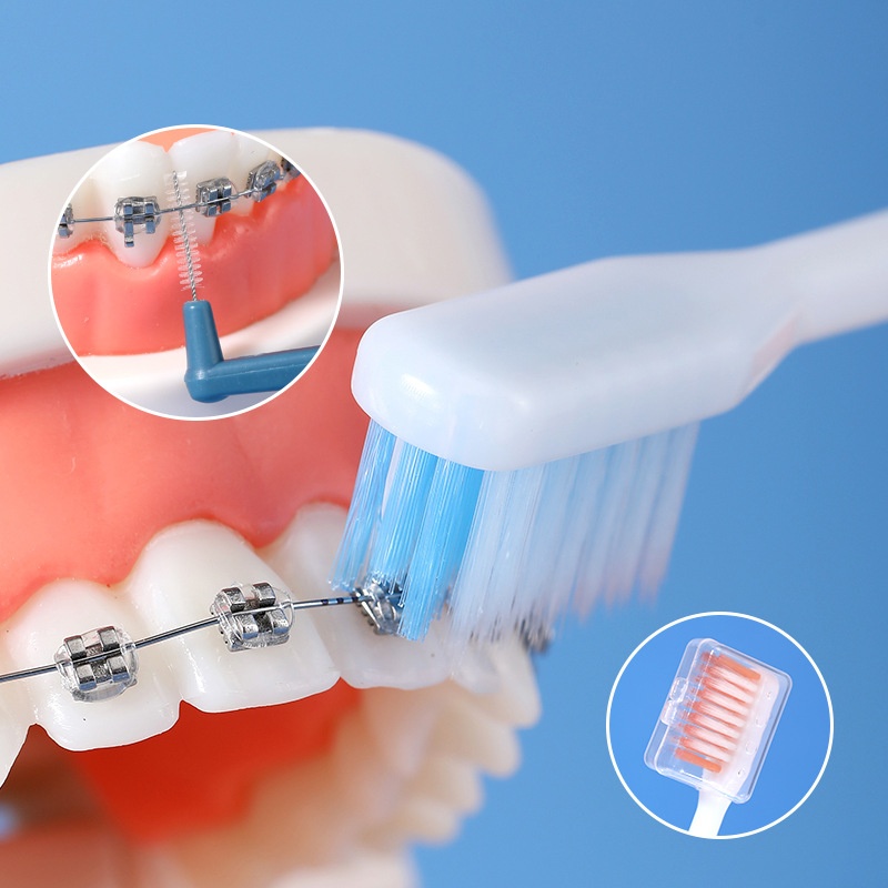 Adult Orthodontic Toothbrush With Sheath Interdental Brush Combination Braces Correction Teeth Special Soft Bristle Toothbrush