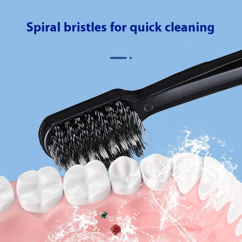 RAOYIBlack And White Couple Toothbrush2 Pieces Spiral Wire Adult Household Ultra-fine Soft Bristle Toothbrush OEM