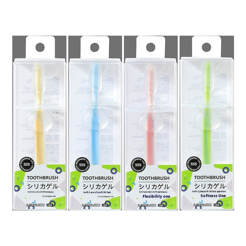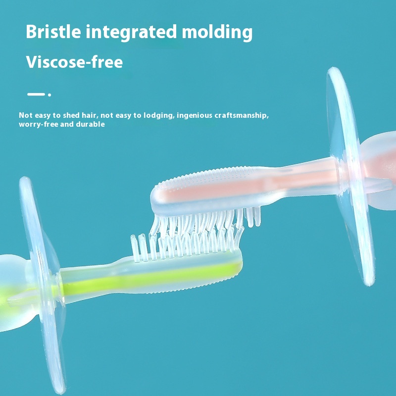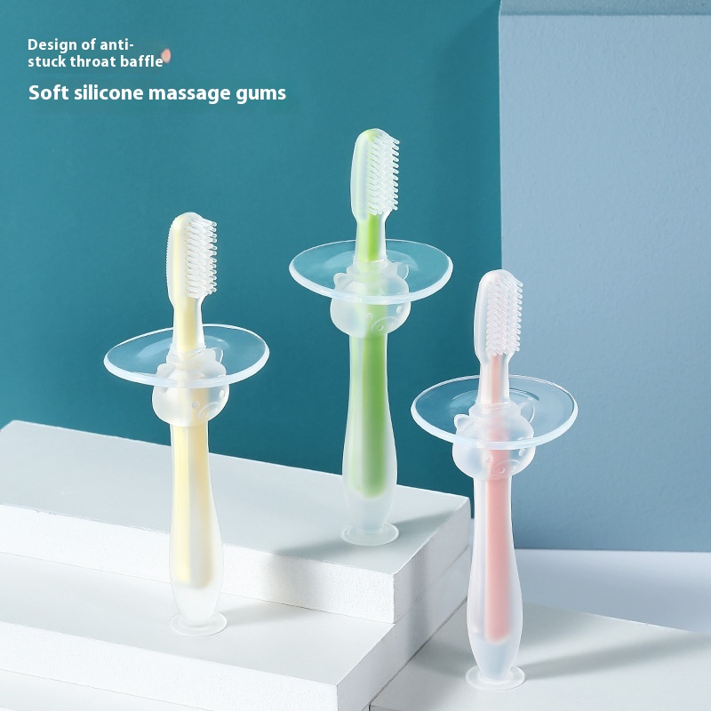 Soft Silicone Baby Toothbrush Suction Cup Baby Toothbrush Soft Bristles Stand Baffle Safety Toothbrush