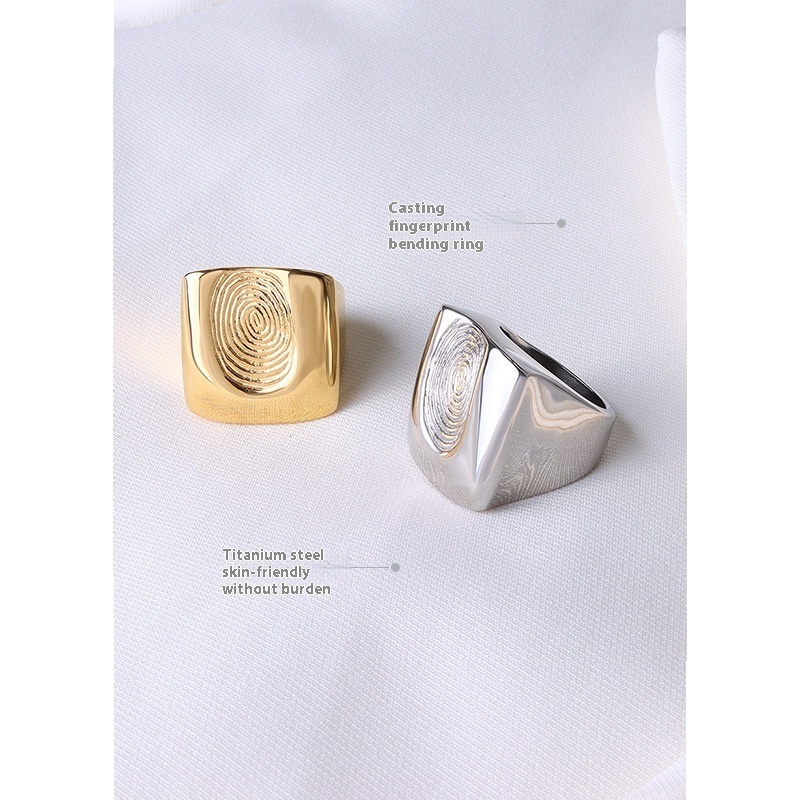 European And American Style Exaggerated Fingerprint Decryption Personalized Casting Ring Men And Women's Titanium Steel Round Surround Jewelry Ring