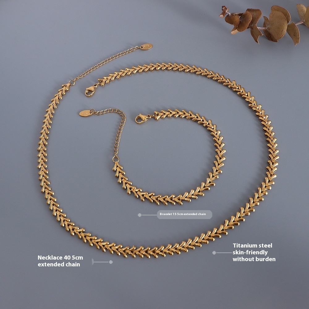 Marka European And American Style Fashion Personality Leaf Necklace Clavicle Chain Bracelet Titanium Steel18k Gold Jewelry Necklace Set