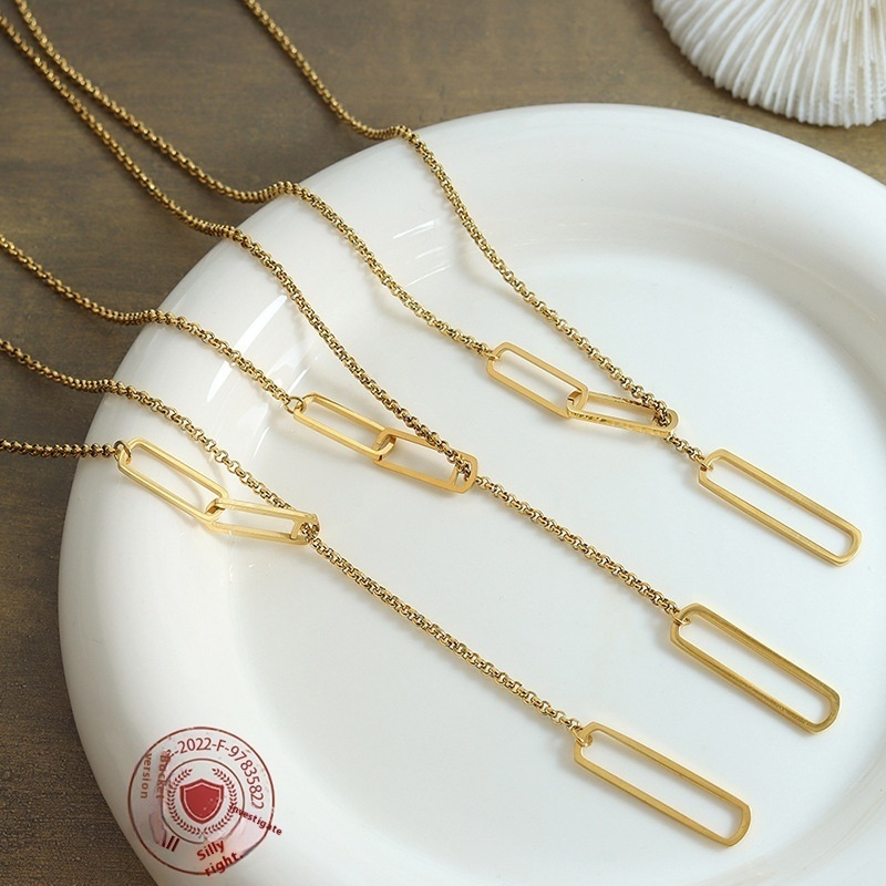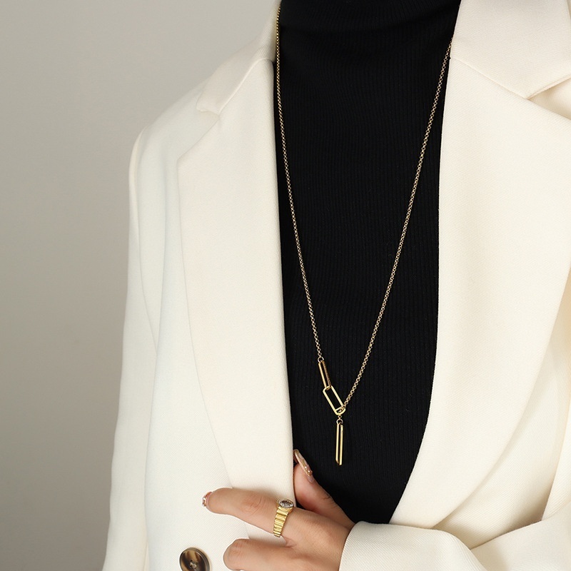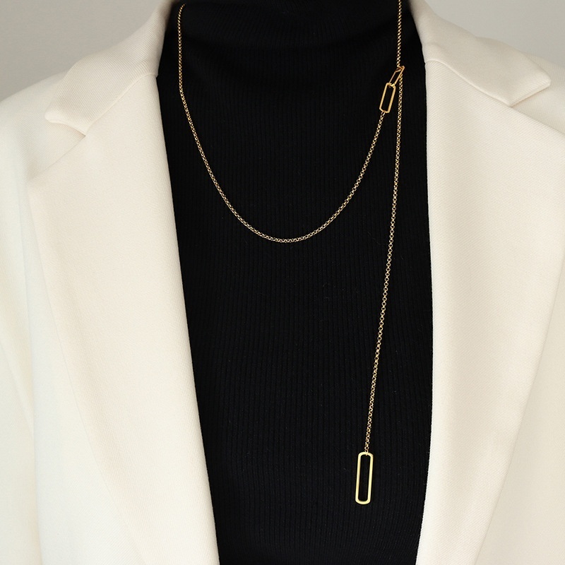 Simple And Cold Style Geometric Angular Rectangular Sweater Chain Necklace Long Style Multiple Wear Titanium Steel Female Jewelry