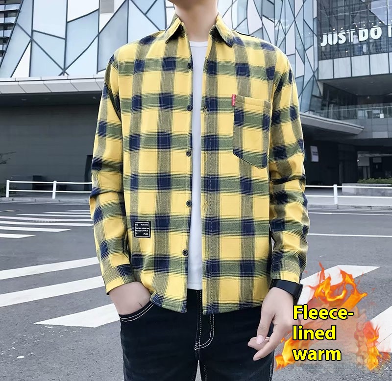 Velvet Thickened Winter Shirt Men's Plaid Long-sleevedy Loose Korean Styley Handsome Men's Casual Warm Shirt