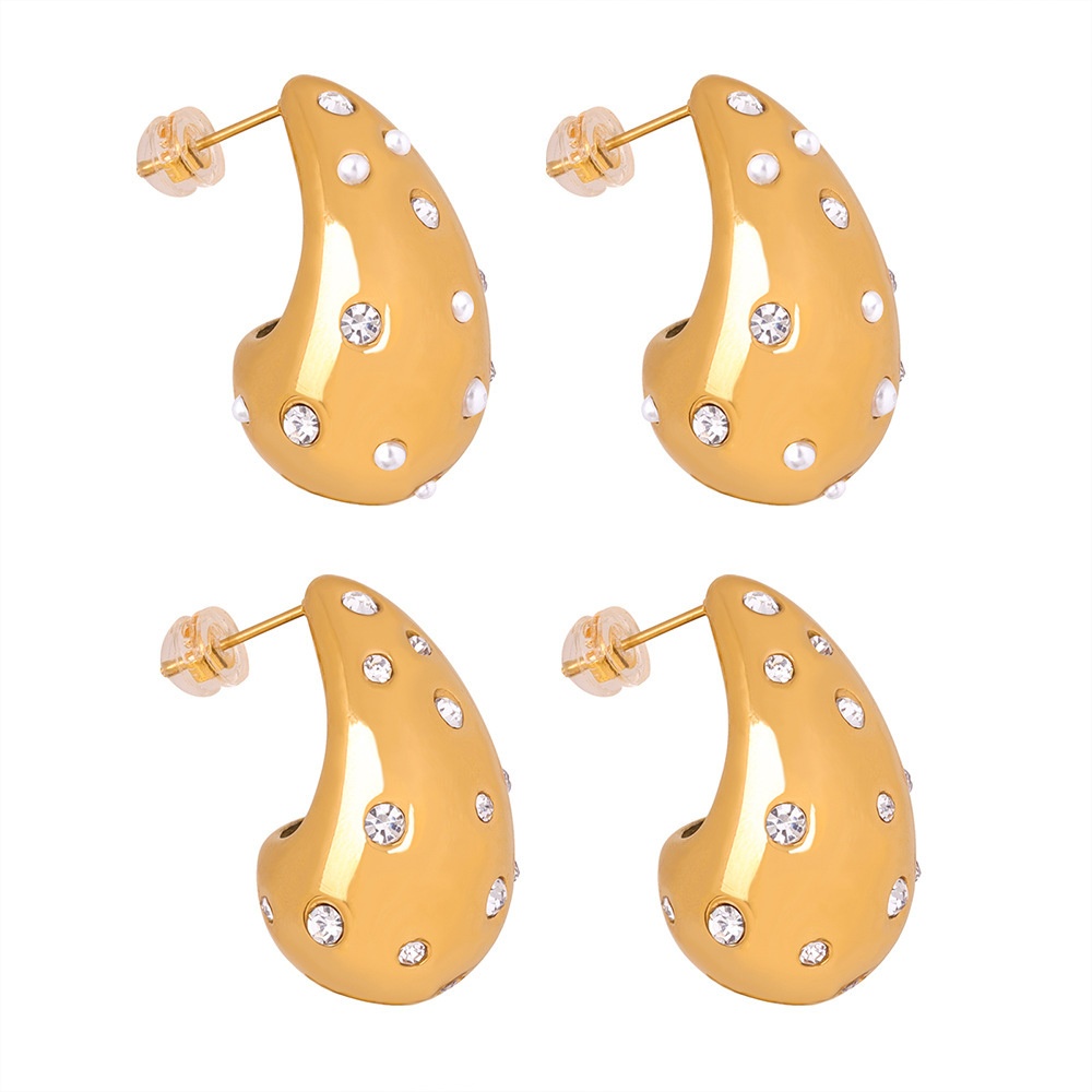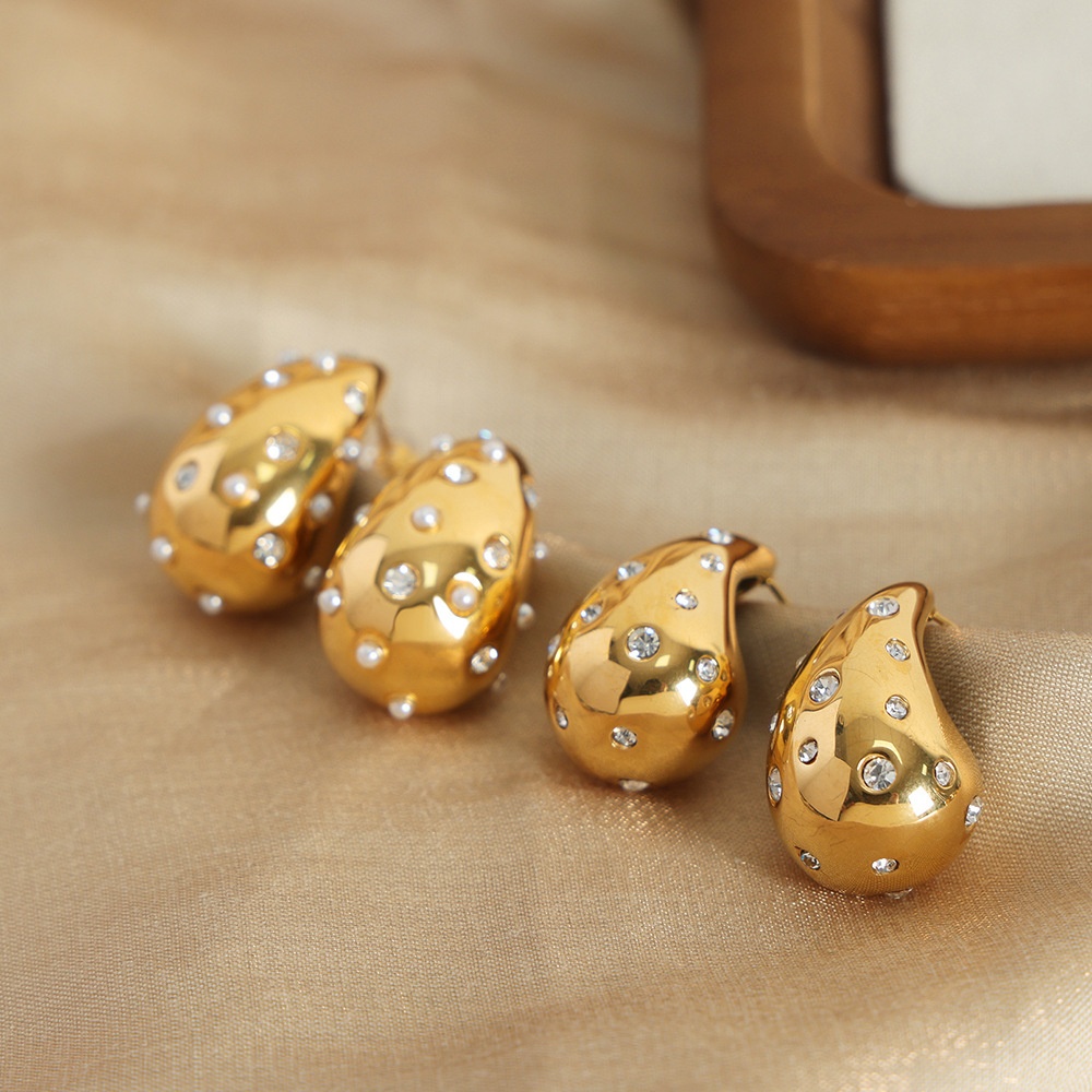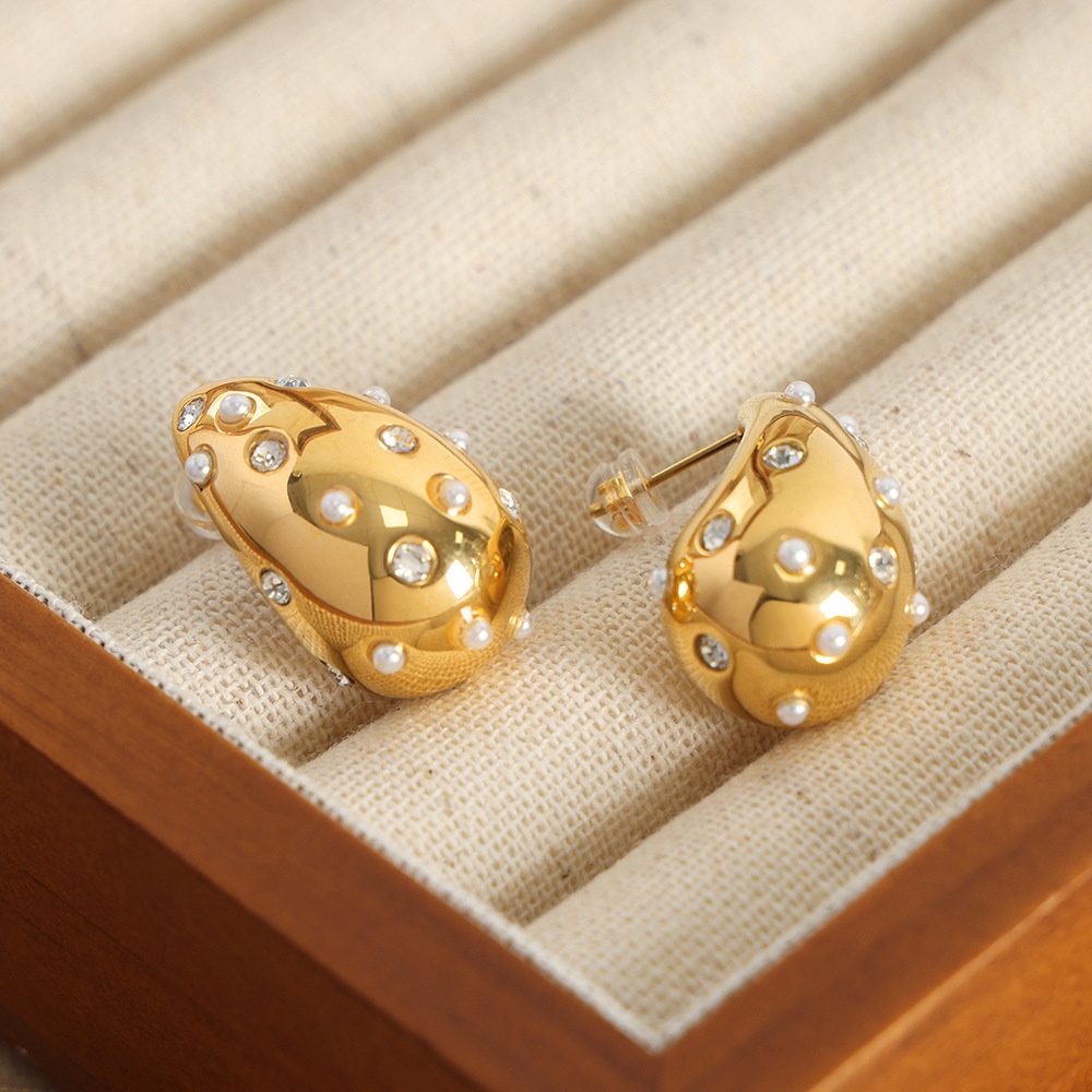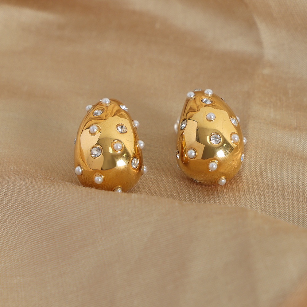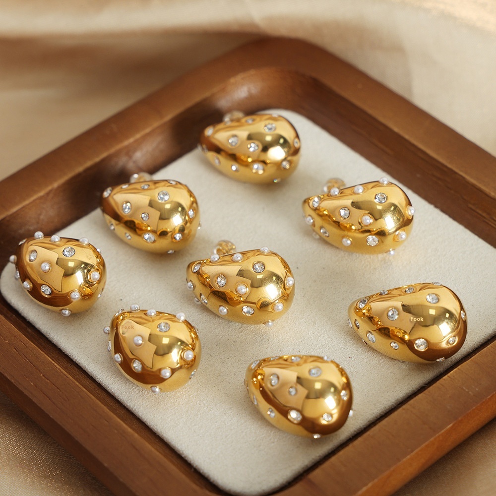 Hong Kong Style Retro Exquisite Personality Niche Earrings Shell Beads Rhinestones Water Drop-shaped Geometric Hollow Titanium Steel Earrings For Women