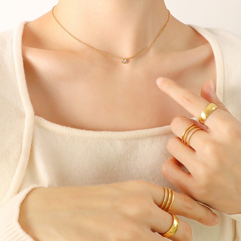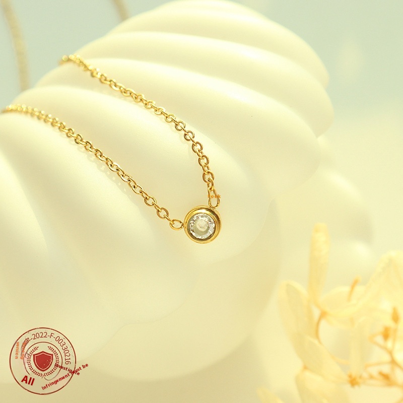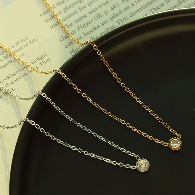 Japanese And Korean Niche Small Fresh Zircon Round Inlaid Pendant Personality Necklace Clavicle Chain Female P157