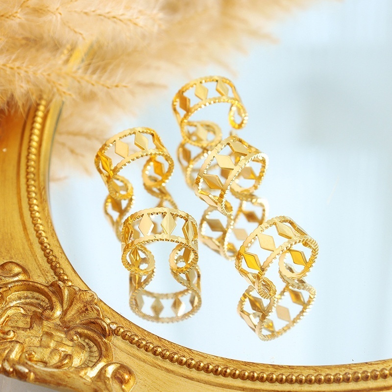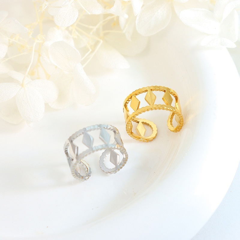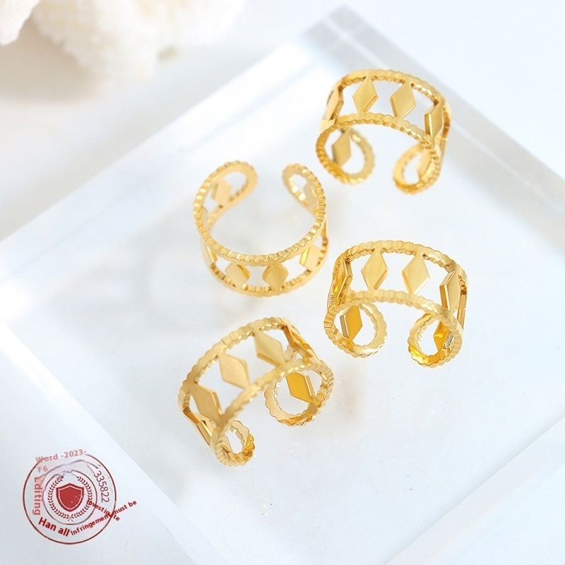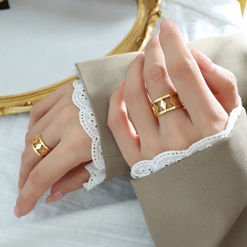 French Diamond Texture Edge Hollow Minimalist Style Simple Fashion Personality Ring Titanium Steel Girl Does Not Fade