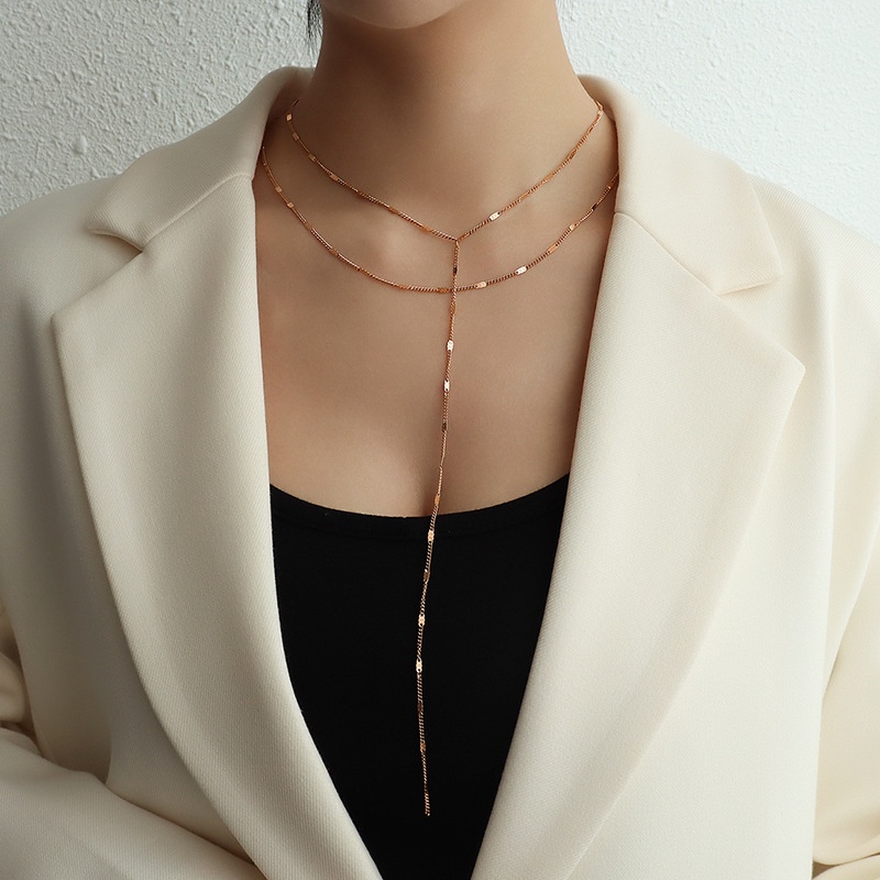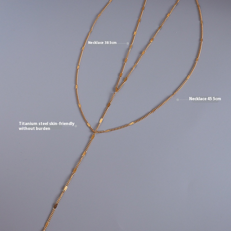 Long Tassel Double-layer Side Chain Titanium Steel18k Gold Material Clavicle Sexy Long Necklace Clavicle Chain P336