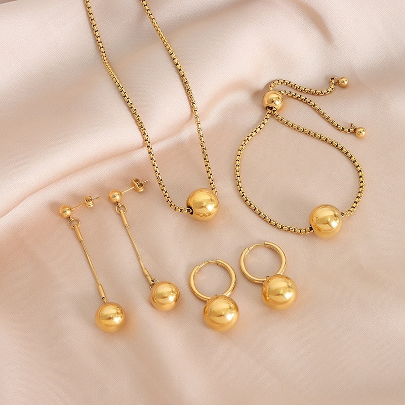 French Steel Bead Chain Does Not Fade,Small And Exquisite,Personality And Temperament,Simple Titanium Steel Necklace And Earrings Set Decorations