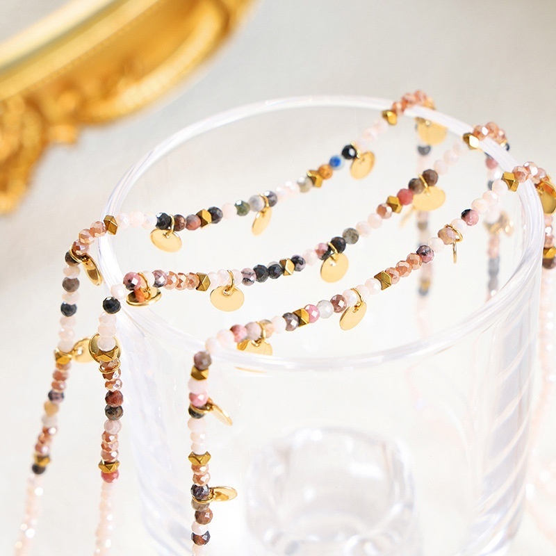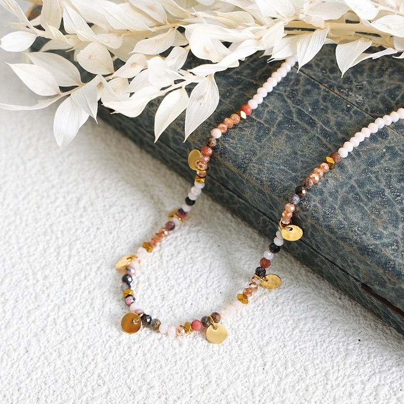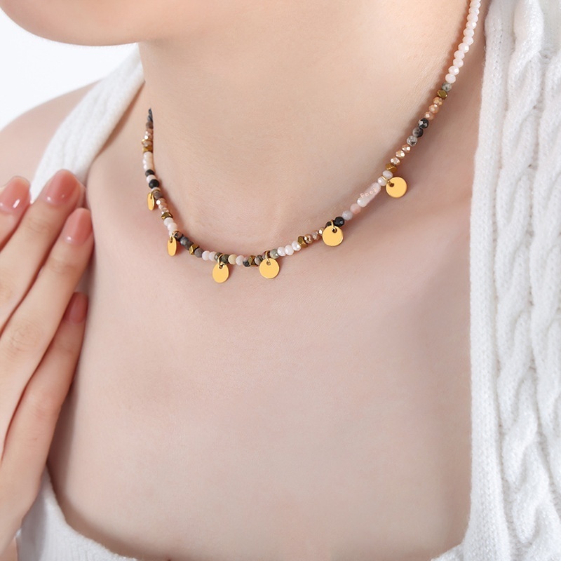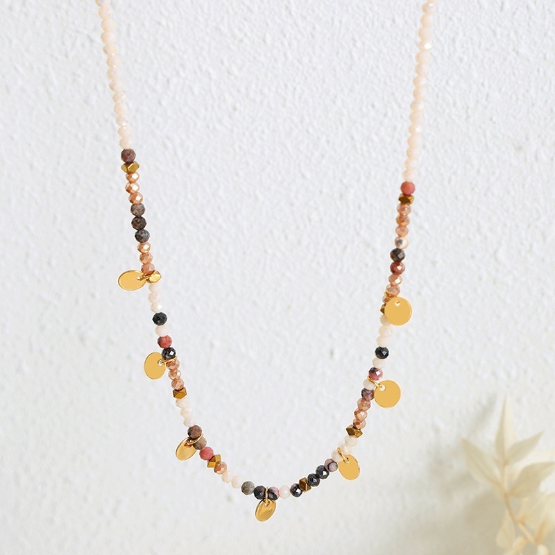 YHip-hop Design Personality Beaded Tassel Disc Multi-color Necklace Necklace Niche Men And Women Titanium Steel