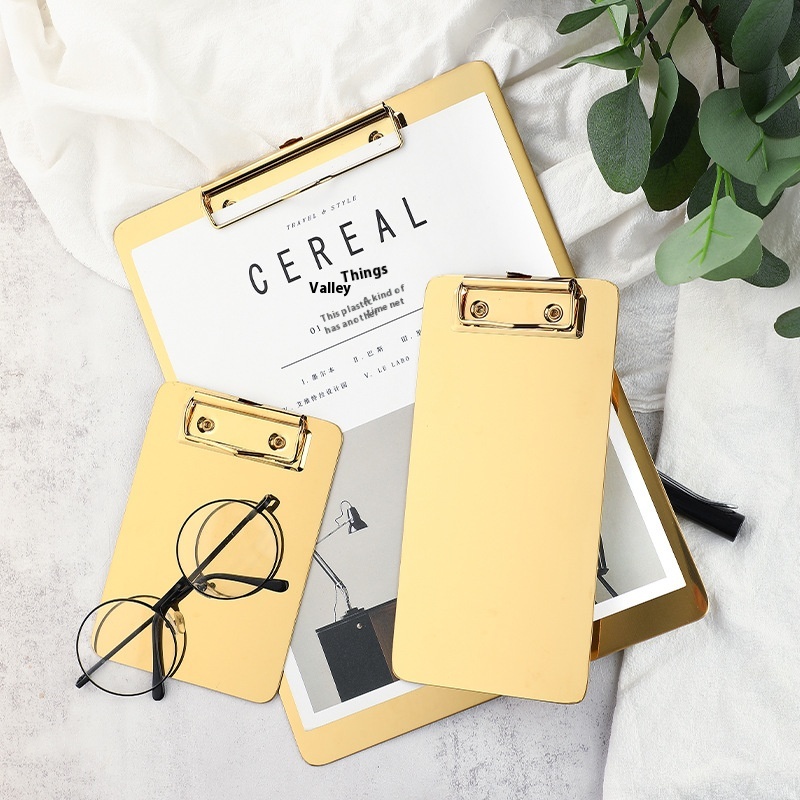 Nordic Gold Stainless Steel File Writing Board Clip Pad Restaurant Ordering Plywood Menu Clip Data Clip Board