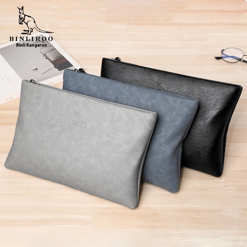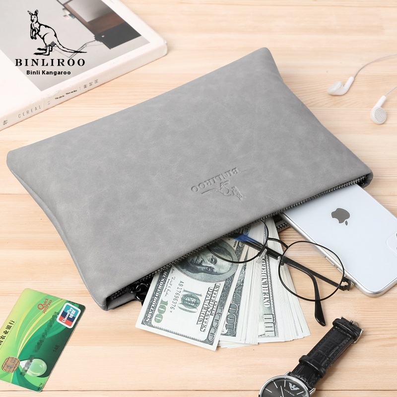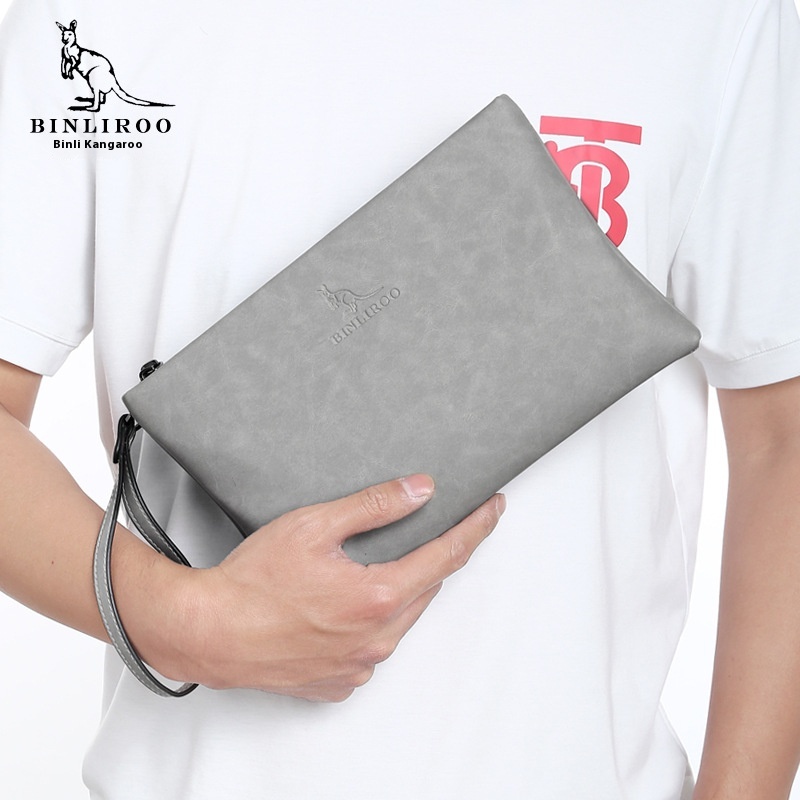 Kangaroo Fashion Men's Soft Leather Envelope Bag Large Capacity Multi-Card Slot Large Wallet Clutch Bag