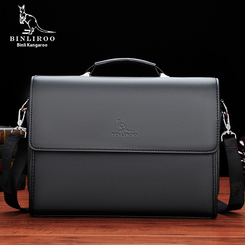 Binley Kangaroo Autumn And Winter Men's Simple Fashion Handbag Solid Color Large Capacity Soft Leather Computer Briefcase