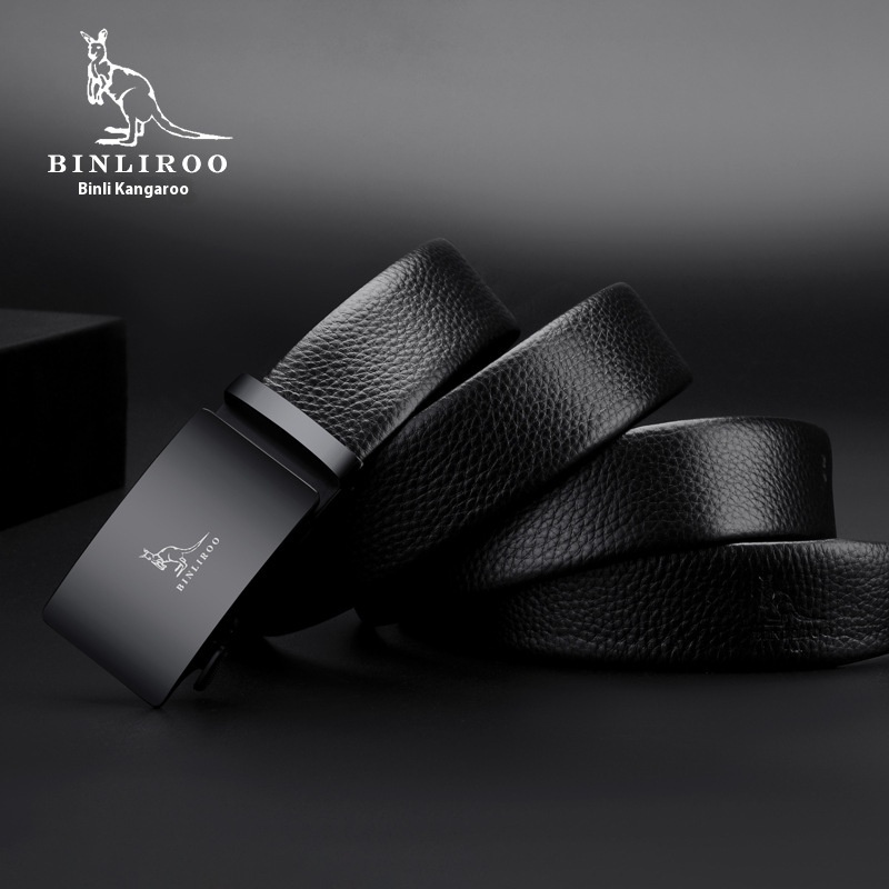 Youth Genuine Leather Men's Simple Smooth Belt All-match Four Seasons Automatic Buckle Men's Belt