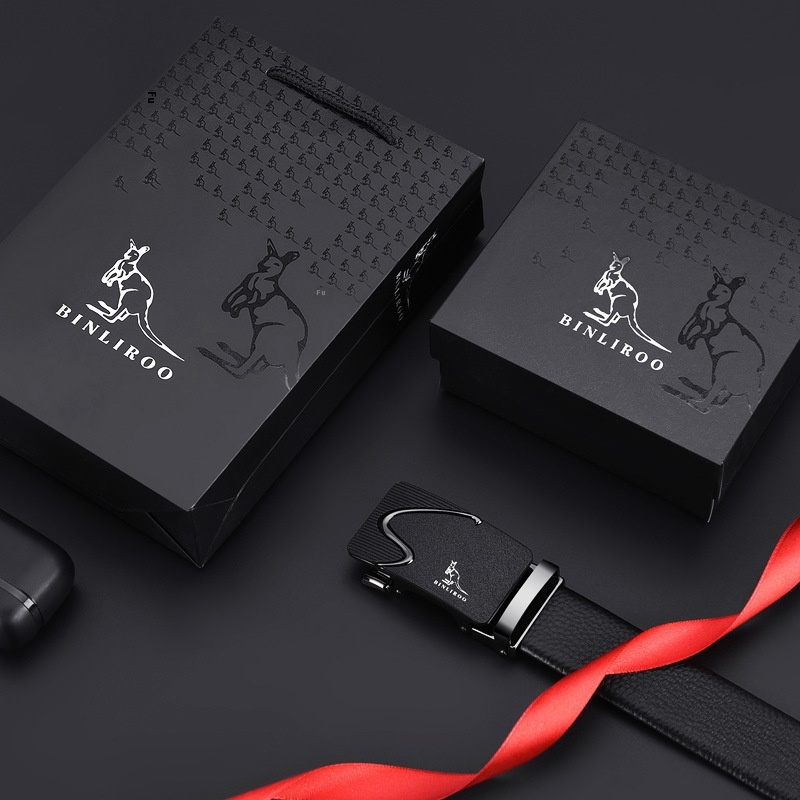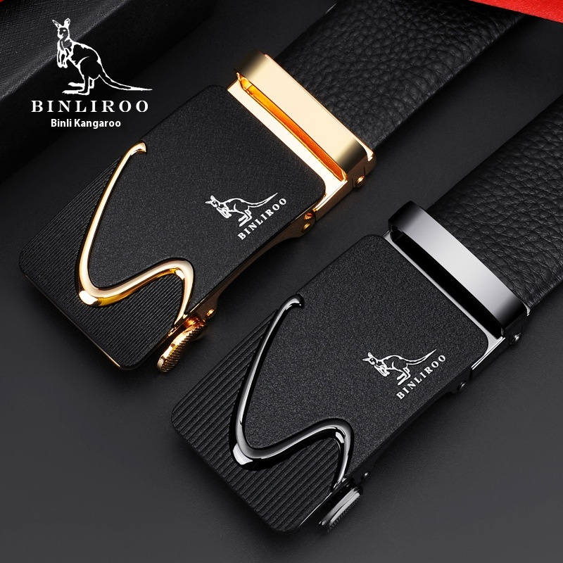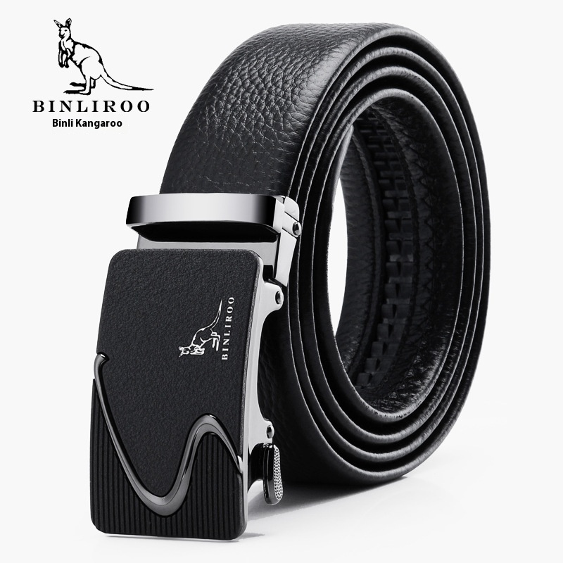 9112 Binli Kangaroo Genuine Leather Men's Letter Textured Buckle Belt