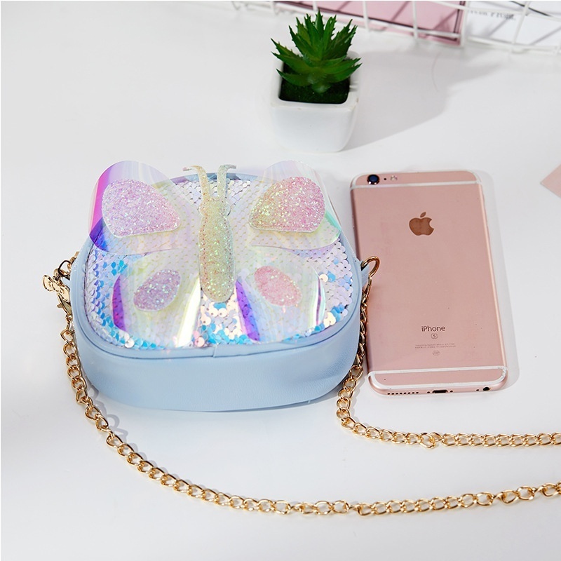 Korean Children's Bag Shoulder Bag Cute Colorful Butterfly Mini Crossbody Bag Girl Chain Bag Baby Coin Purse