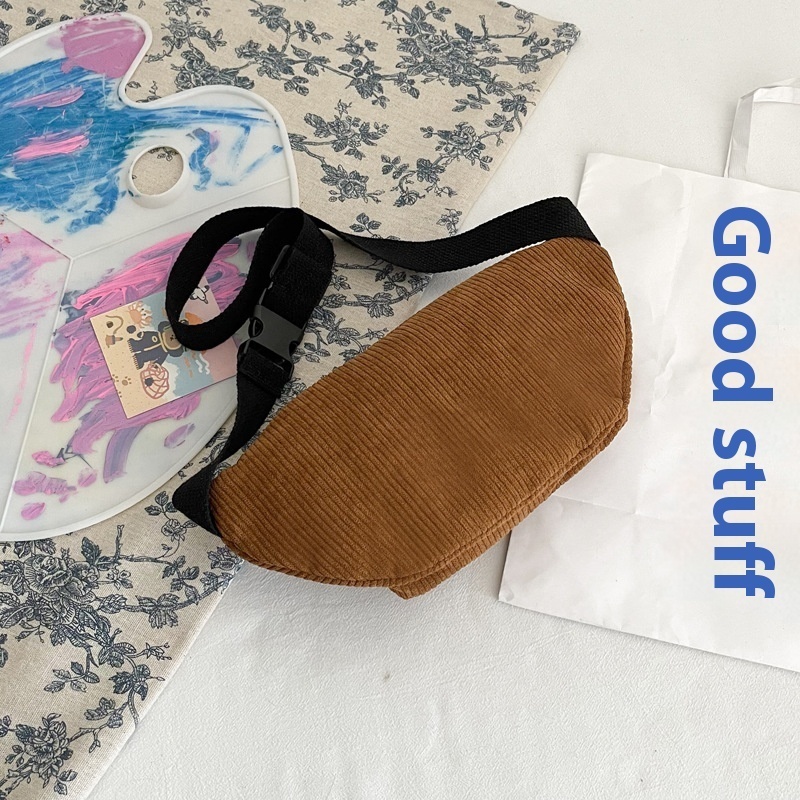 Chest Bag Women Style Texture Crossbody Small Bag Japanese And Korean Sports Waist Bag Student Corduroy Shoulder Bag