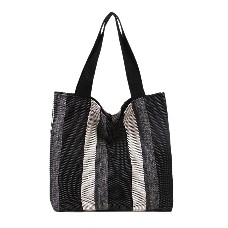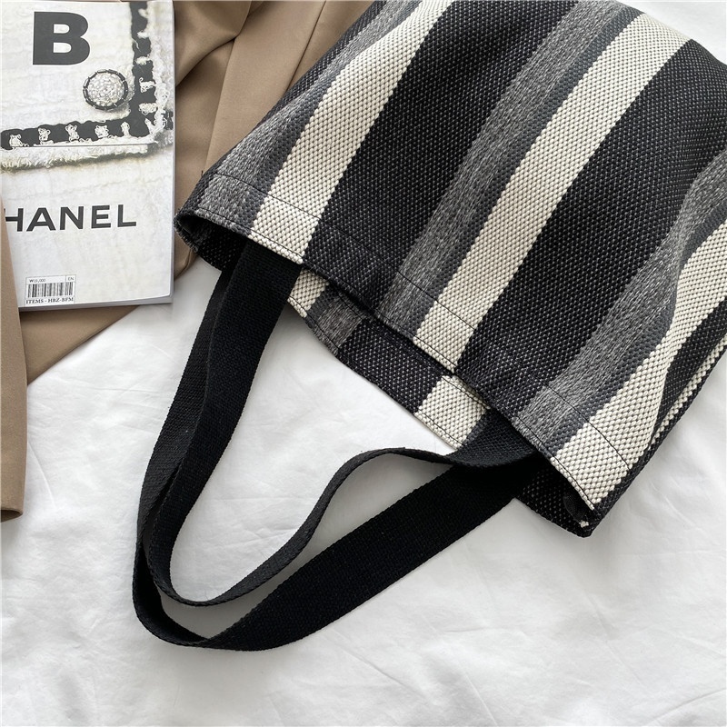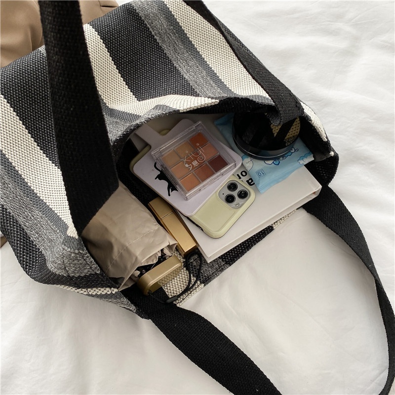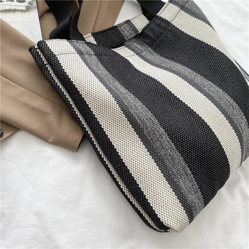 Korean Canvas Shoulder Bag Autumn And Winter Style Literary Stripes Large Capacity Student Tote Bag Fashion Shopping Bag