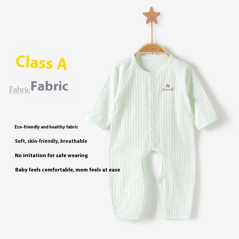 Baby Jumpsuit Spring And Autumn Summer Long-sleeved Thinborn Clothes Summer Clothes Open Crotch Air Conditioning Boys And Girls Baby Romper
