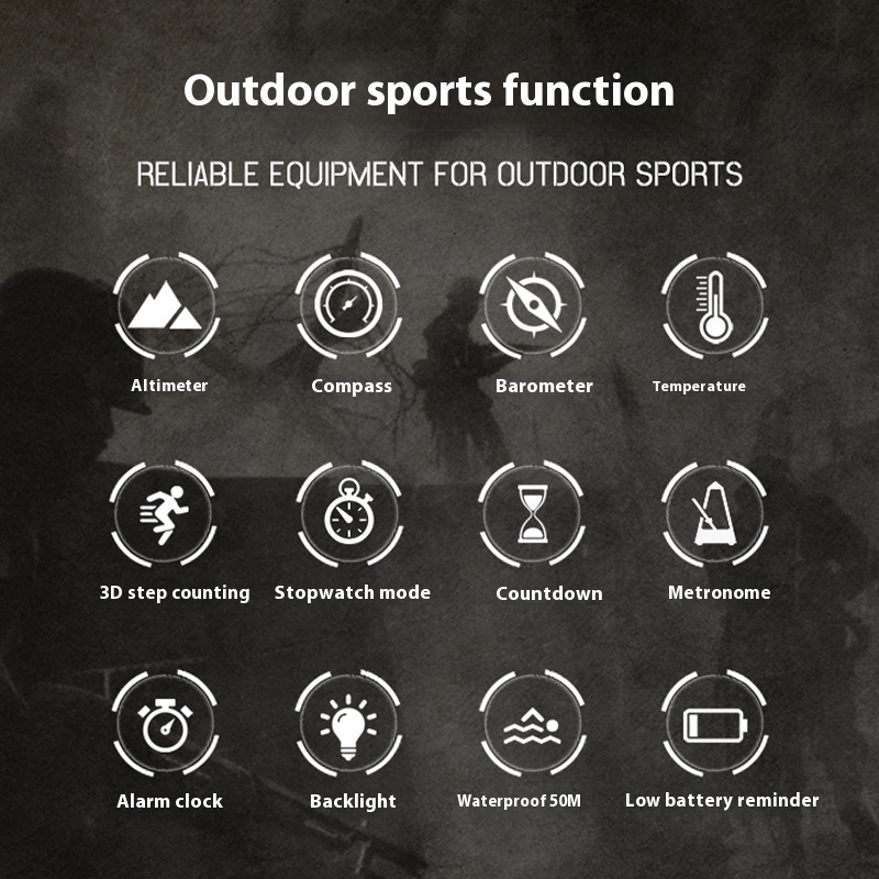 Men's Outdoor Electronic Watch Height Stopwatch Metronome Air Pressure Temperature Compass Multi-function Waterproof Sports Watch