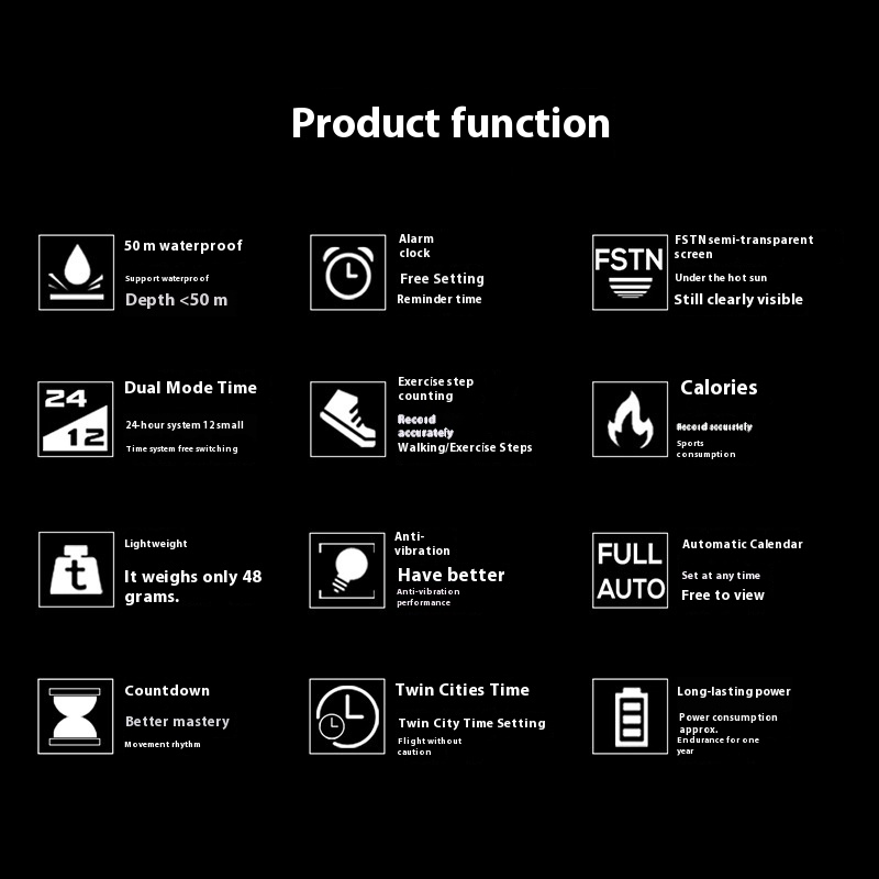 Outdoor Sports Waterproof Smart Watch Alarm Clock Pedometer Mileage Calories Multi-function Student Watch