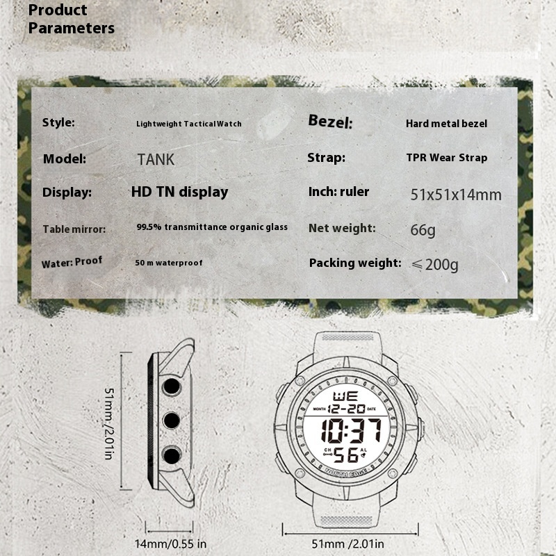 Outdoor Sports Waterproof Smart Watch Round Large Dial Luminous Alarm Calendar Long Standby Electronic Watch For Men