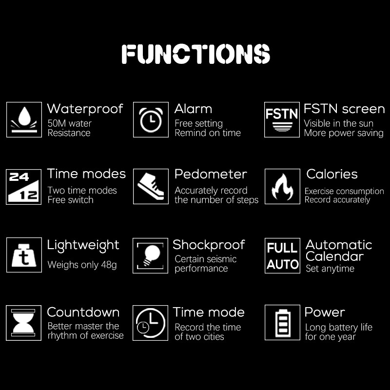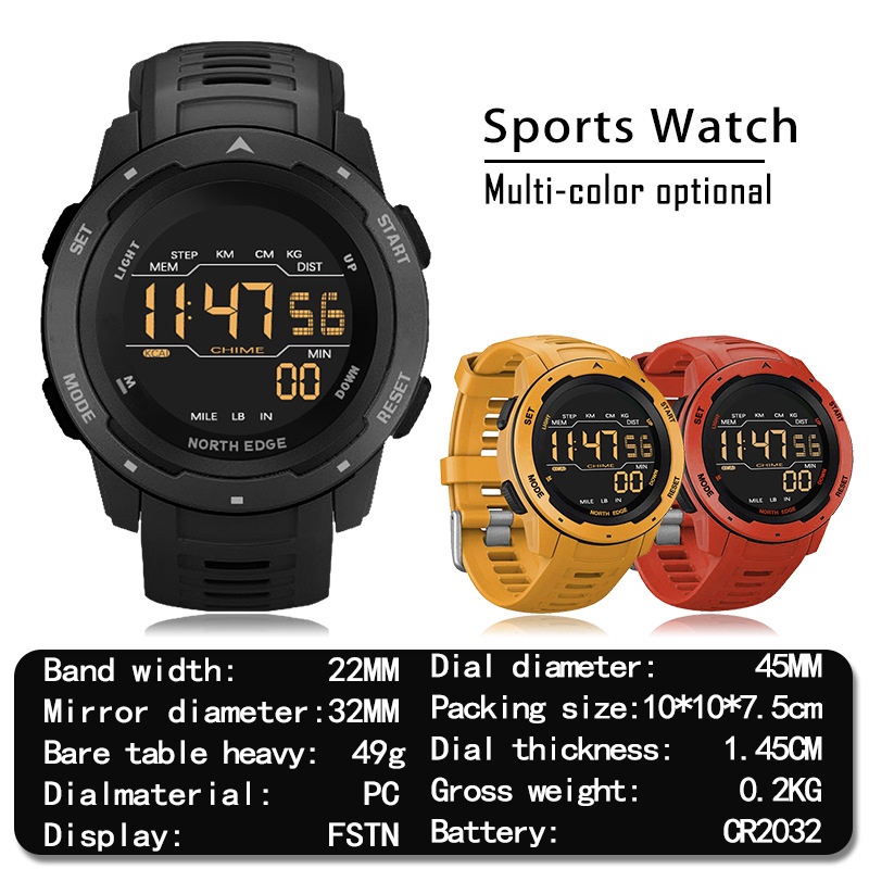 Men Digital Watch Men's Sports Watches Dual Time Pedometer