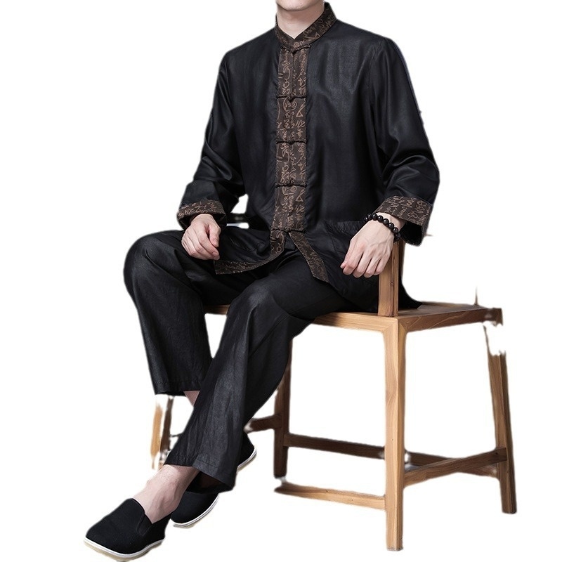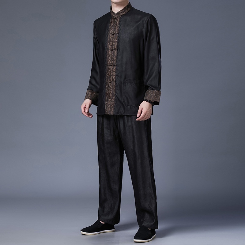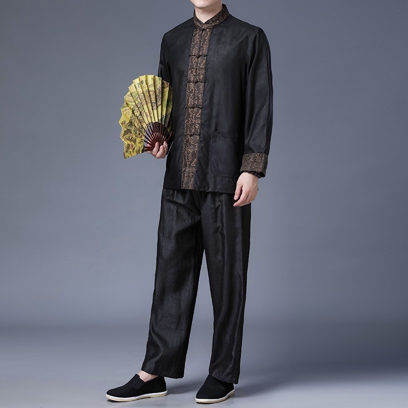 100%Mulberry Silk Suit Heavyweight Xiangyun Yarn Men's Silk Top Spring Men's Pants Chinese Tang Suit Jacket