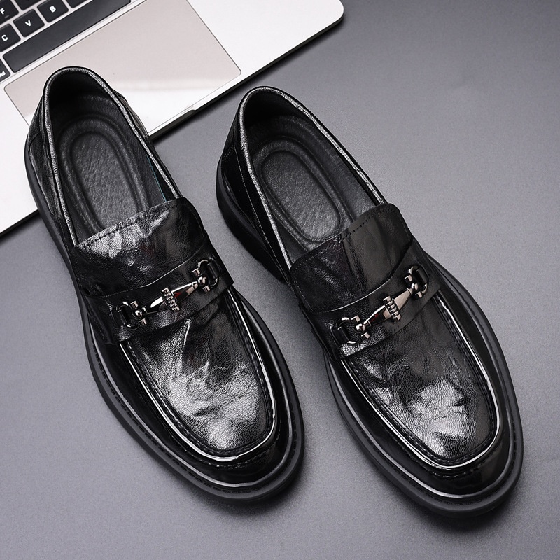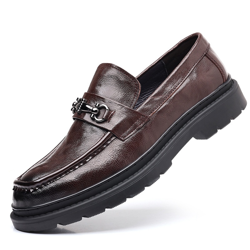 Spring Men's Business Casual Leather Shoes Formal Breathable Non-slip Men's Shoes Genuine Leather Thick-soled Loafers Men's Batch