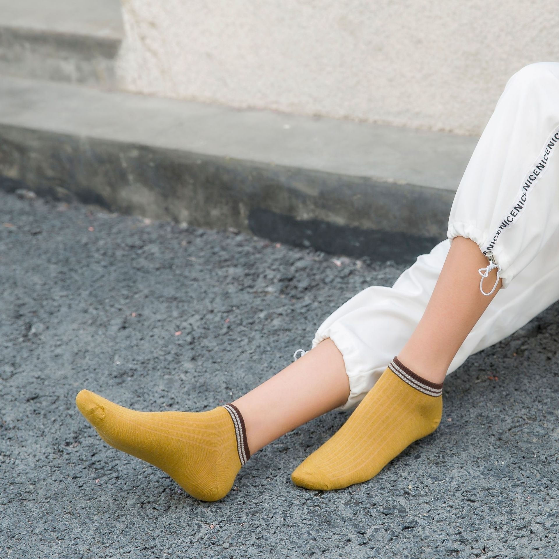 Spring And Summer Drawstring Short Socks For Women Japanese Style Crotch Two-bar Boat Socks For Women Cotton Sweat-absorbent Socks For Women