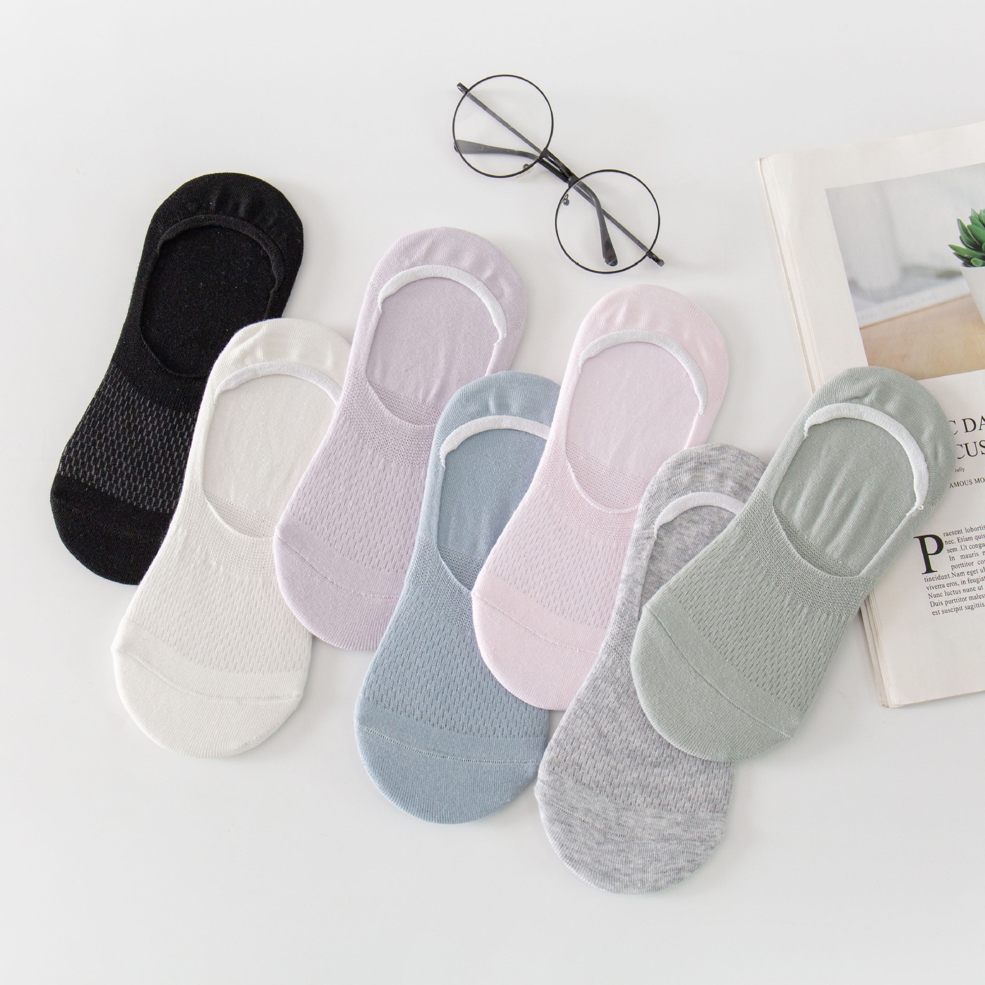 Invisible Socks Women Thin Hollow Mesh Boat Socks Summer Breathable Women's Socks Cotton Silicone Non-slip Short Socks