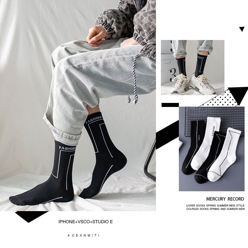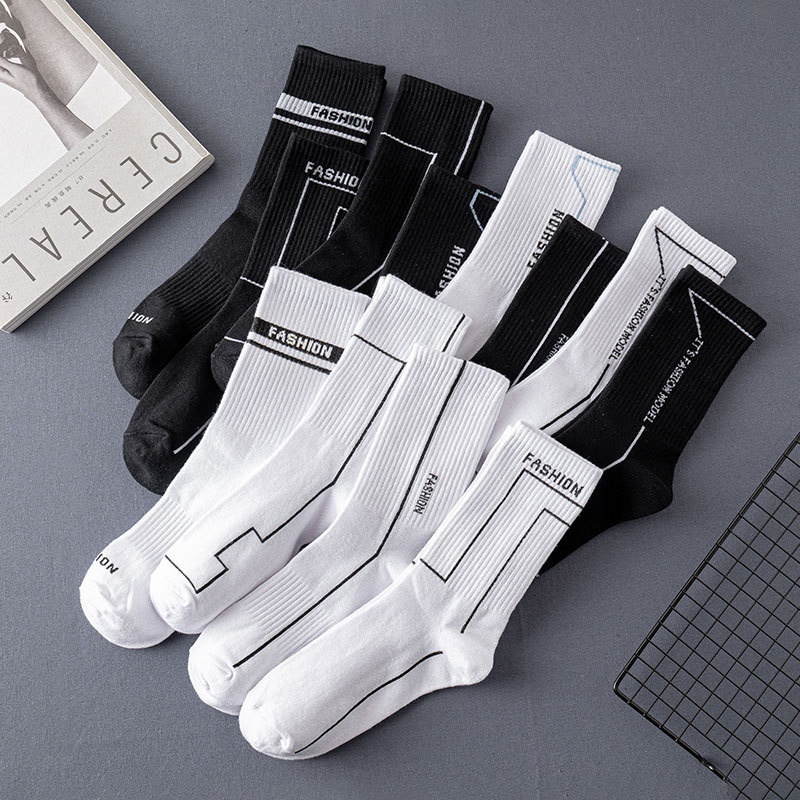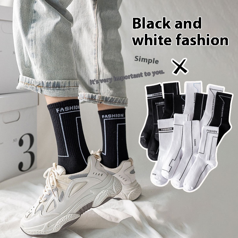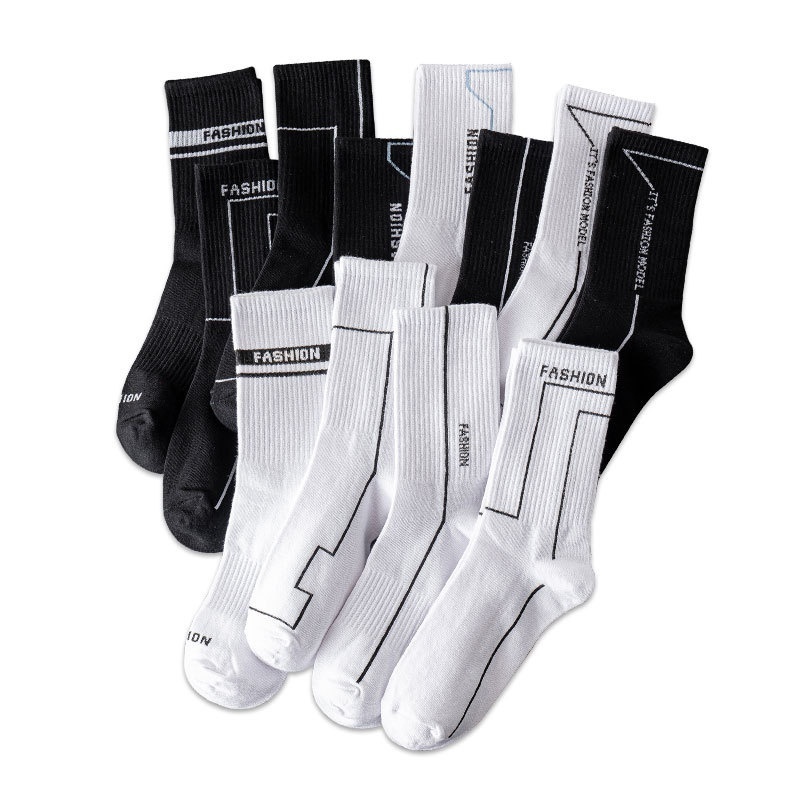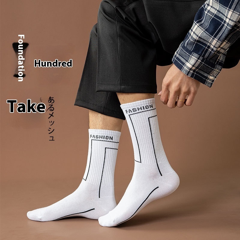 Socks Men's Long Socks Autumn And Winter Black Middle Tube Socks Cotton Socks White High Tube Men's Simple Long Tube Cotton Socks