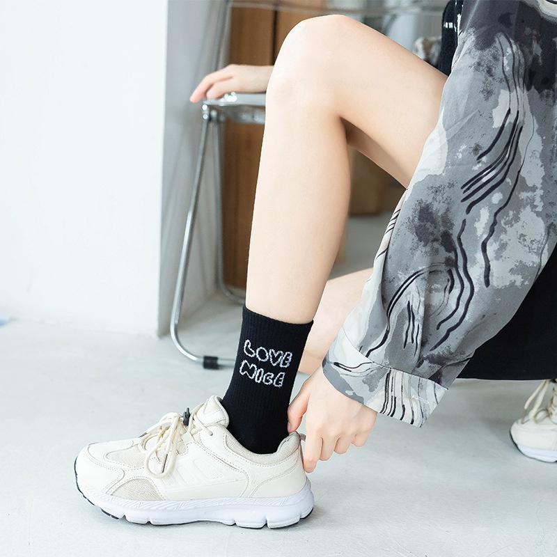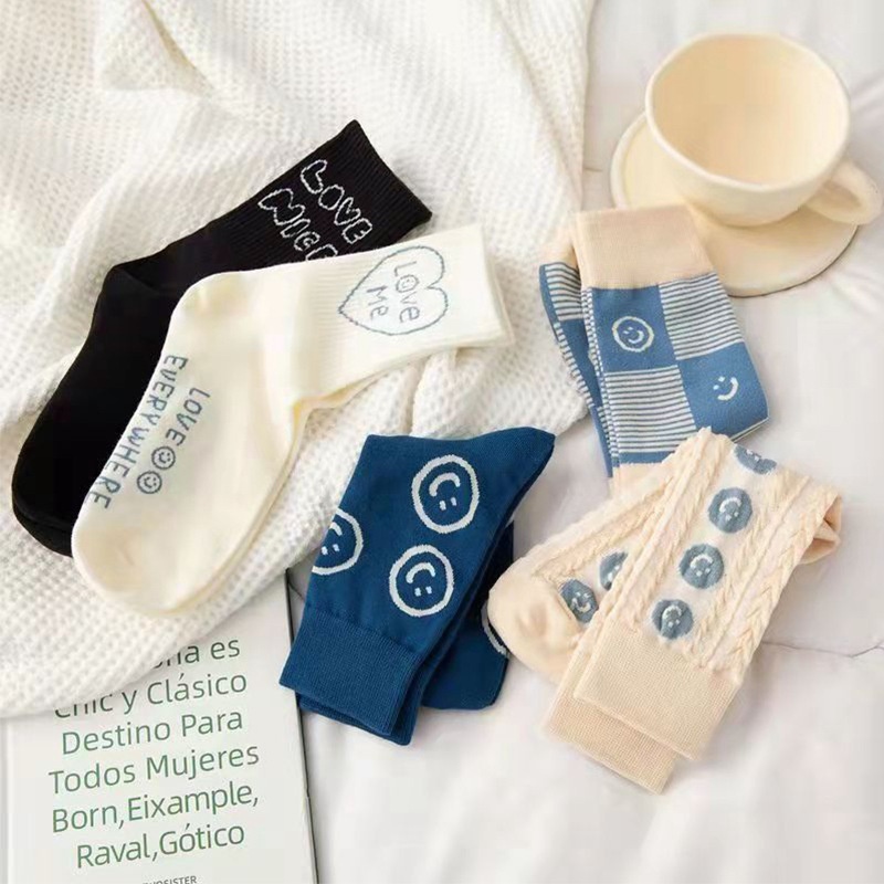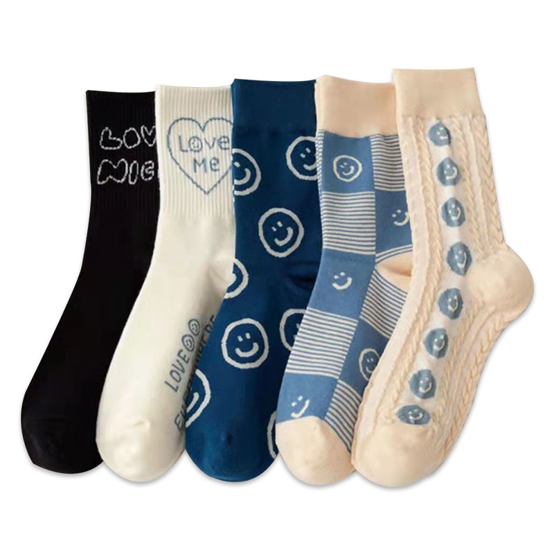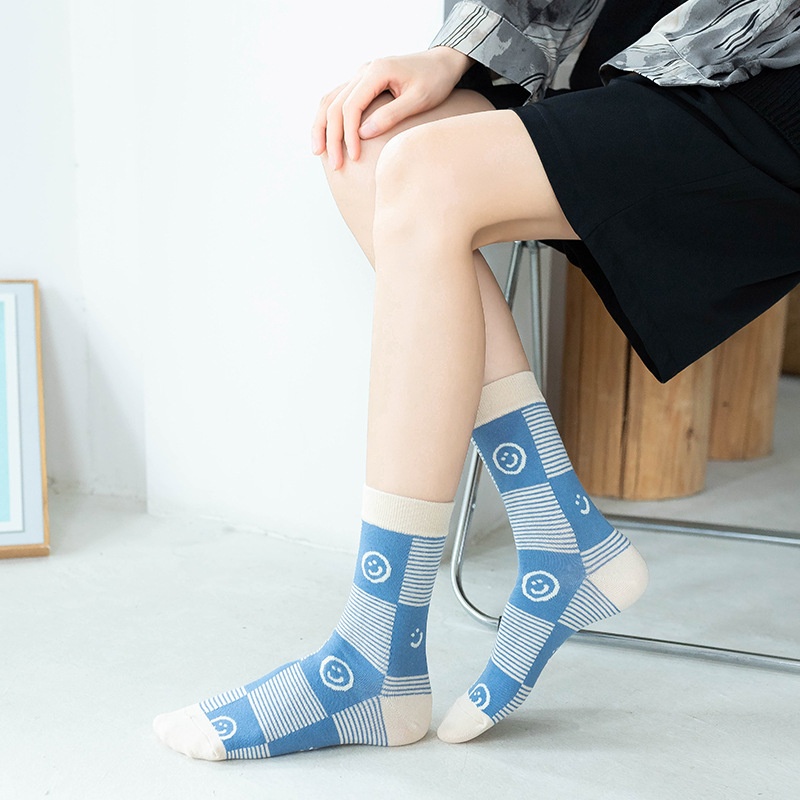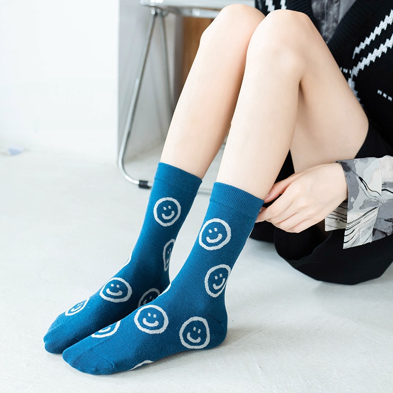 Socks Women's Tube Socks Blue Smiley Face Personality Long Socks Ladies Sports Socks Spring And Autumn College Style