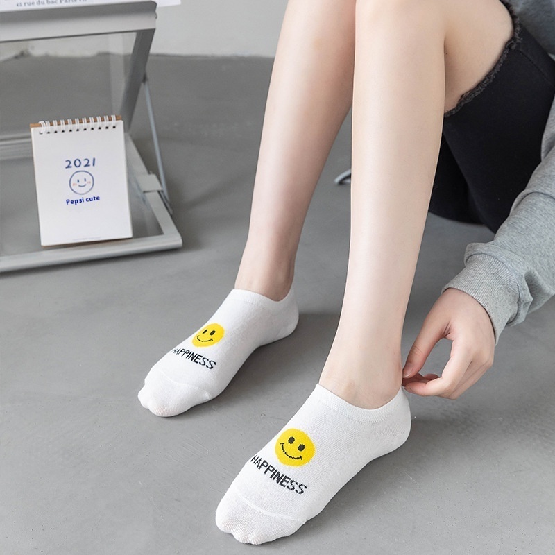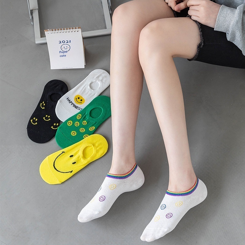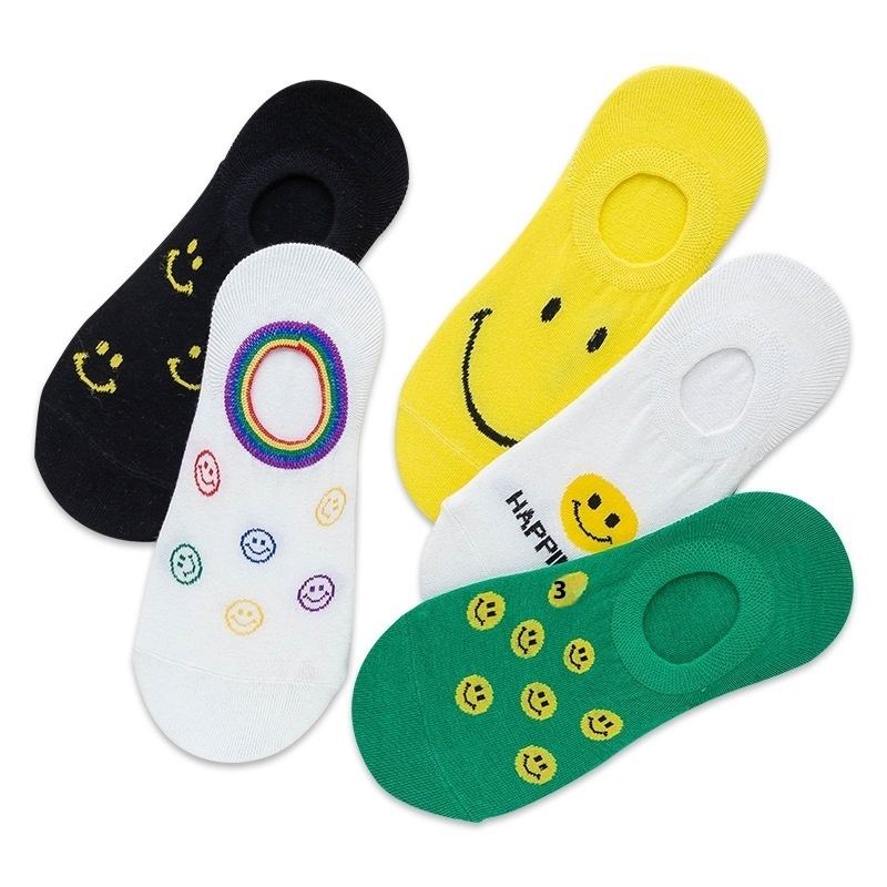 Smiley Invisible Socks For Women In Summer Thin Shallow Breathable Japanese Silicone Non-slip Low-top Candy Color Women's Socks