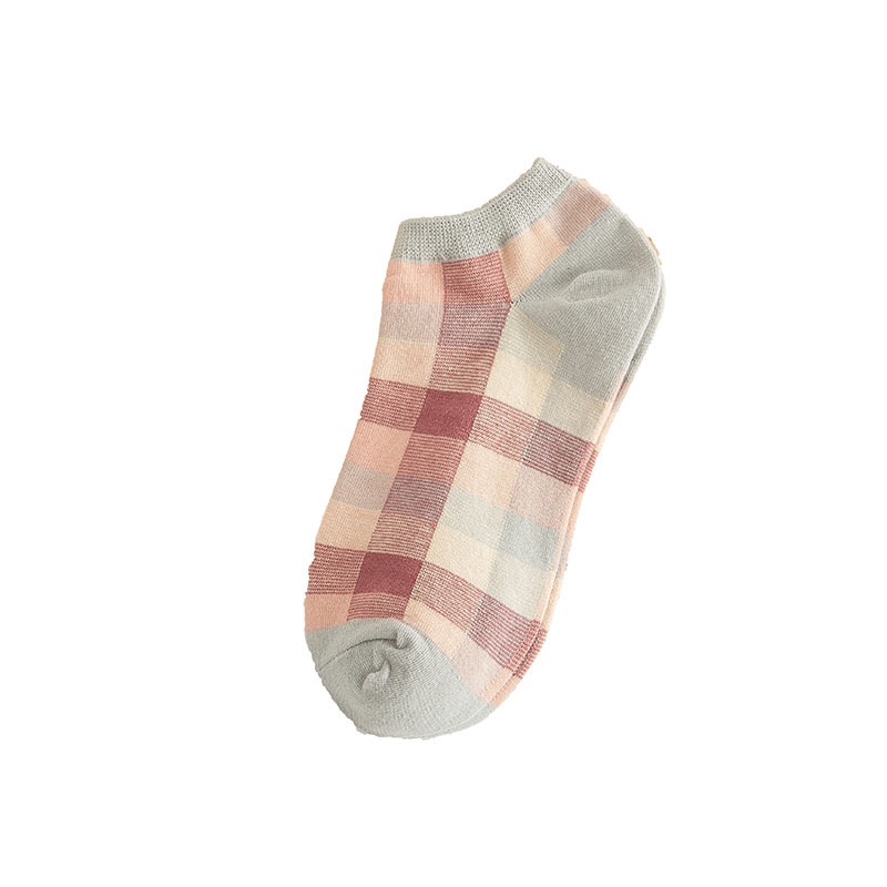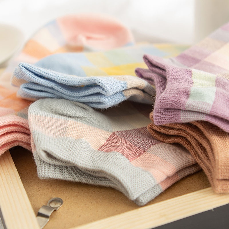 Boat Socks For Women,Style For Spring And Summer,Small Fresh Plaid Women's Socks,Cotton Versatile Solid Color College Style Socks,