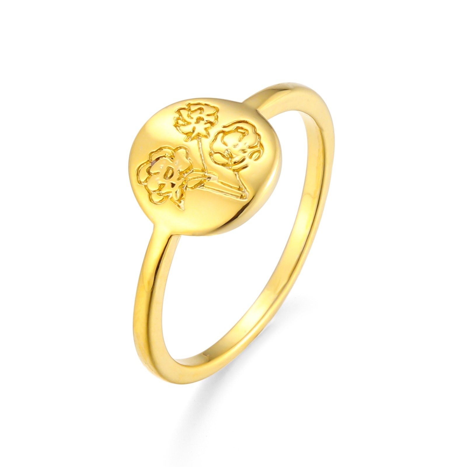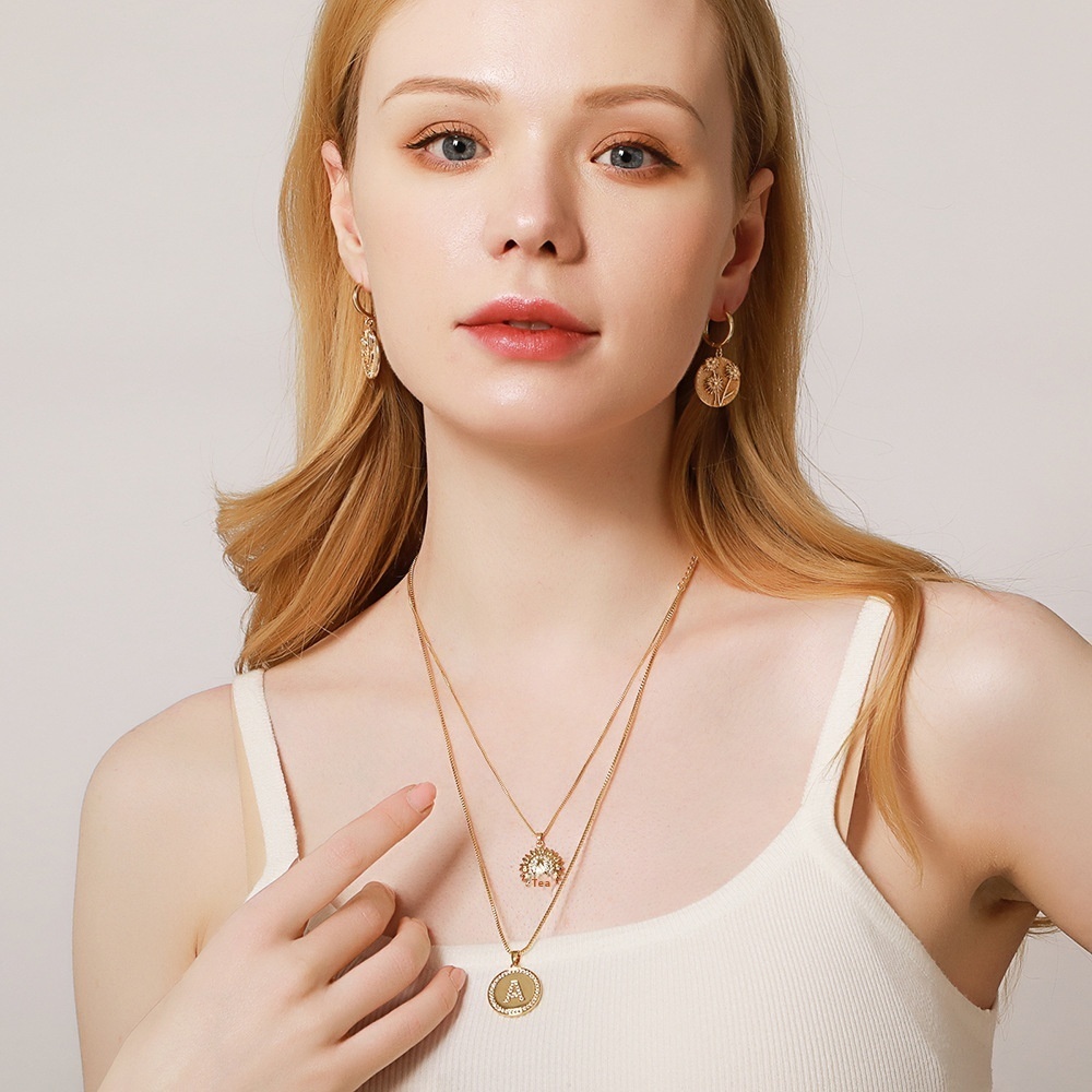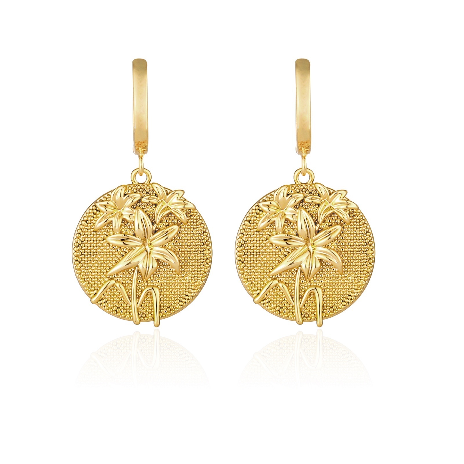 European And American Embossed Month Flower Pendant Earrings18 KReal Gold Plated Round Fashion Exquisite Female Ring Necklace