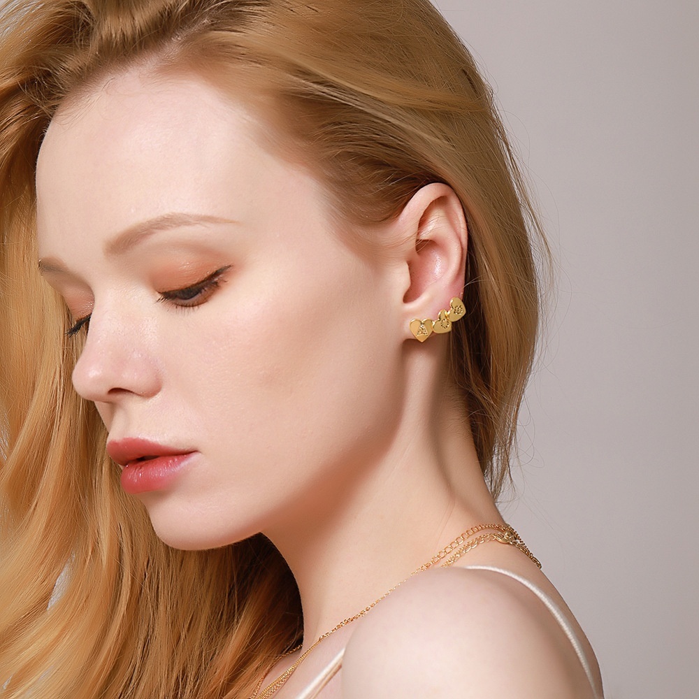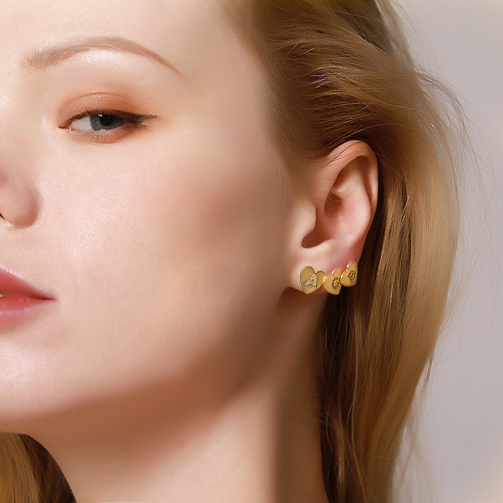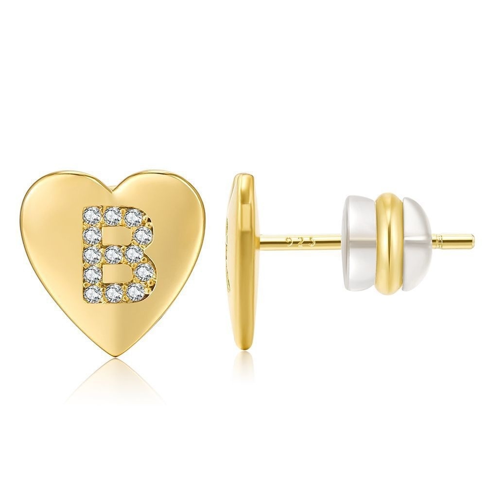 European And American Direct Heart-shaped Letter Earrings Copper Plated With Real Gold925 Silver Needle Earrings Micro-inlaid Zircon Earrings