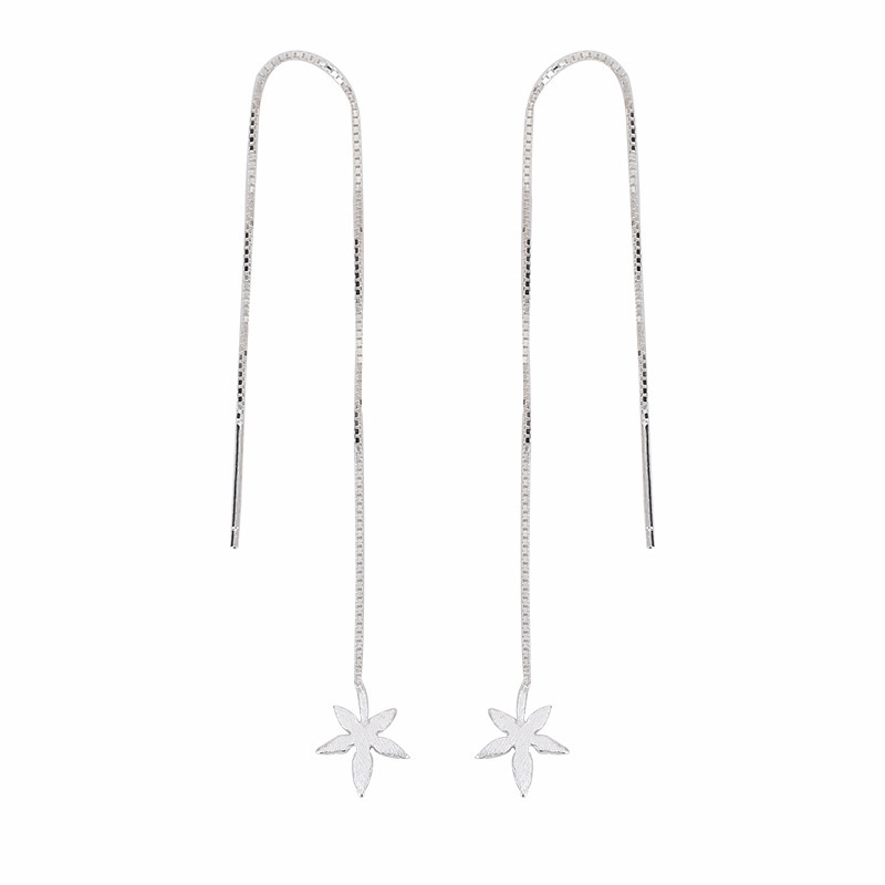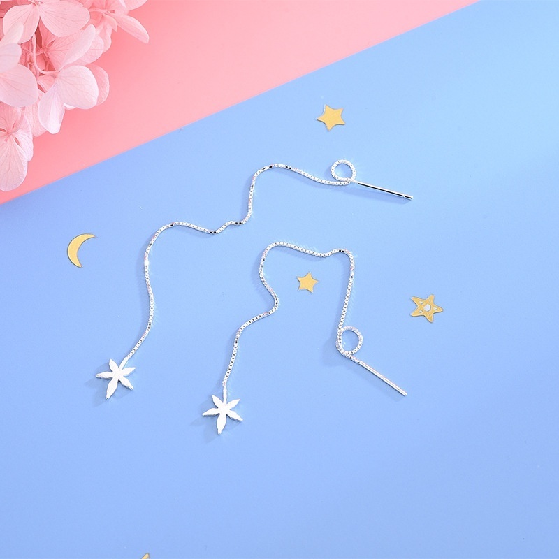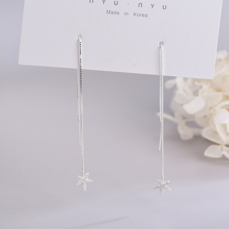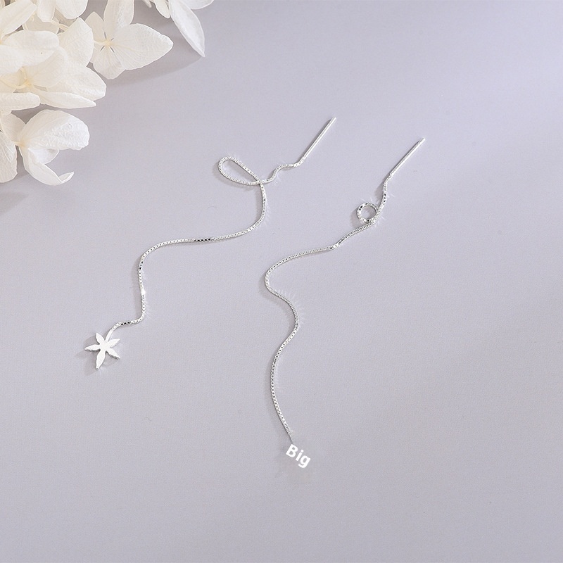 S925 Sterling Silver Korean Style Brushed Maple Leaf Earrings Small Fresh Literary Star Leaf Tassel Earrings Female One Piece