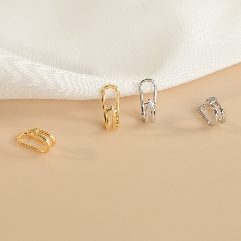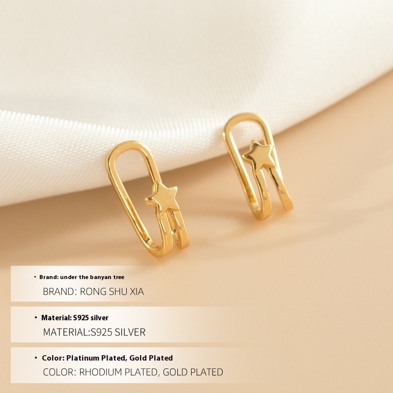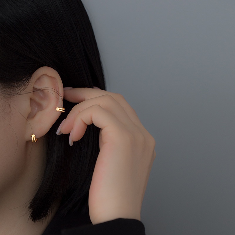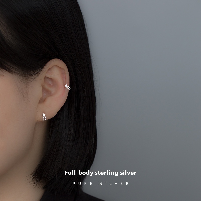 S925 Silver Ear Clip No Ear Hole Star Ear Bone Clip Earrings All-match Five-star Corner Earrings Female Summer